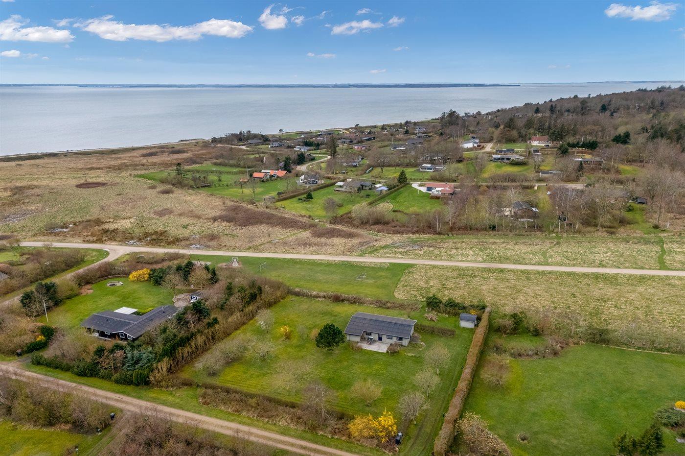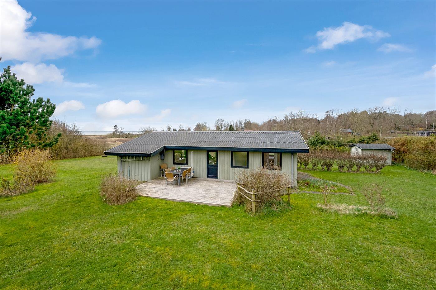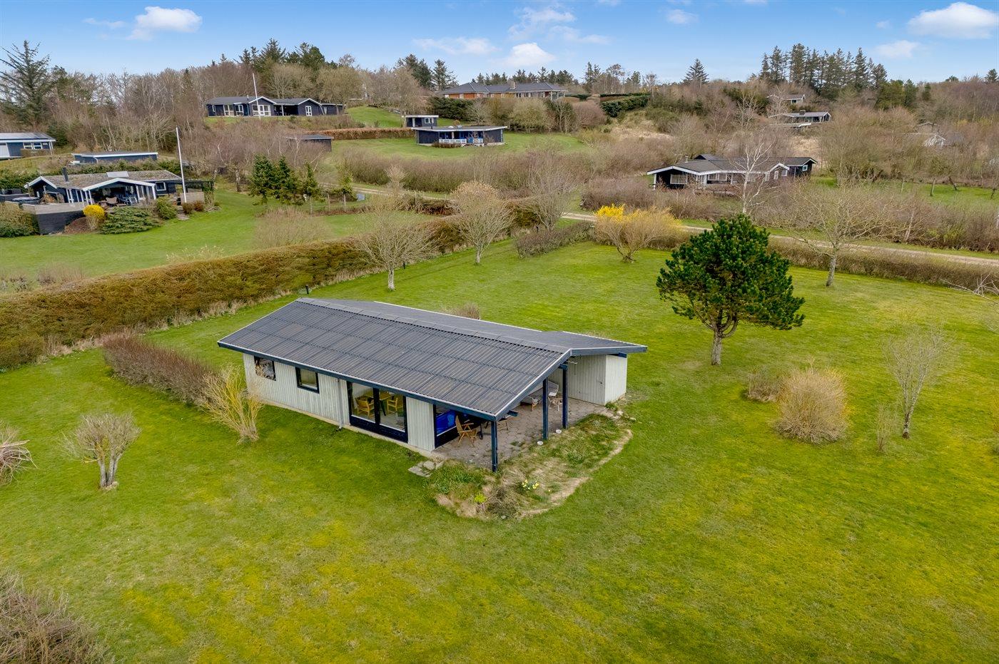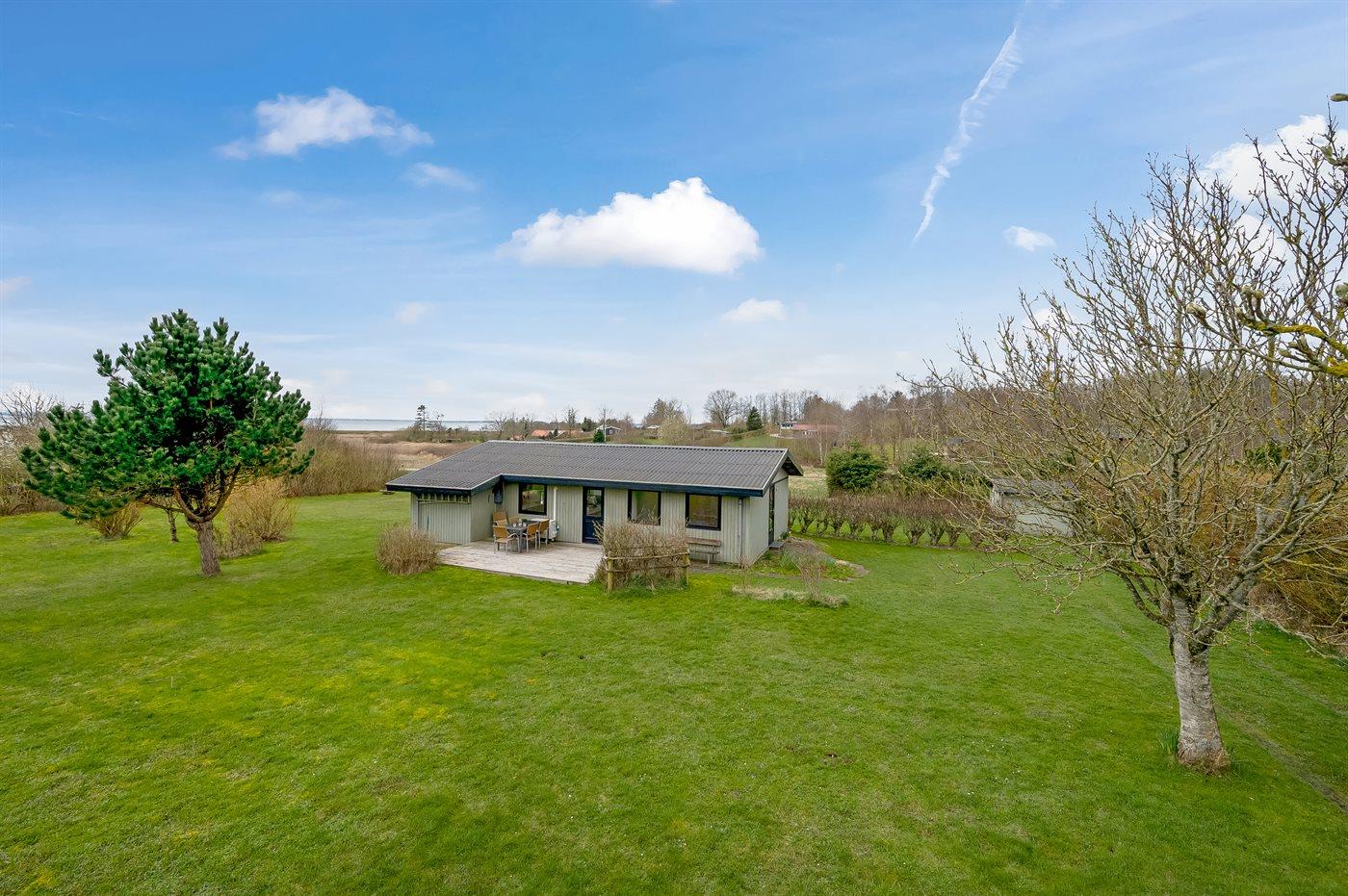 Ferieboligen er beliggende på en 2500 m² stor havegrund. Der er 1300 m til fjorden. Nærmeste forretning er beliggende i en afstand af 3000 m. Til ferieboligen hører åbent terrasseareal. Desuden er der overdækket terrasse. Der er redskabsrum. Bålsted. Parkering ved ferieboligen.
