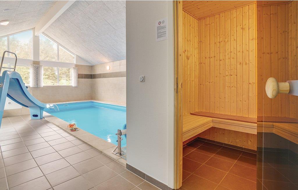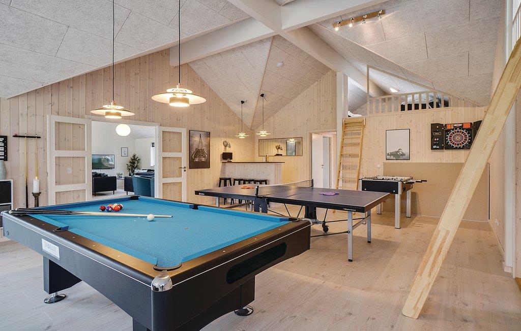 Hop en tur i den 23 m² store swimmingpool eller slap af i spabadet, så længe I har lyst! Holder I ferie i dette feriehus er der ingen grænser for, hvor længe vandhunde og badeglade gæster kan boltre sig i husets eget poolområde. Her er også en dejlig sauna og en vandrutsjebane. I dette feriehus er der uanset vejr og årstid mulighed for en ferie fuld af aktiviteter. Her har I nemlig et stort aktivitetsrum, som både er udstyret med billardbord, Playstation 4, bordtennis, dart og bordfodbold. Giv den gas med spillene og nyd en kold forfriskning i husets helt egen bar med køleskab, som også står i aktivitetsrummet. Udendørs er der også tænkt på masser af sjove aktivitetsmuligheder for alle aldre. Med nabohuset (B51005) deles nemlig et fællesareal bestående af en stor multibane, hvorpå der kan spilles fodbold, volley- og basketball samt en stor og spændende legeplads til de yngste gæster.