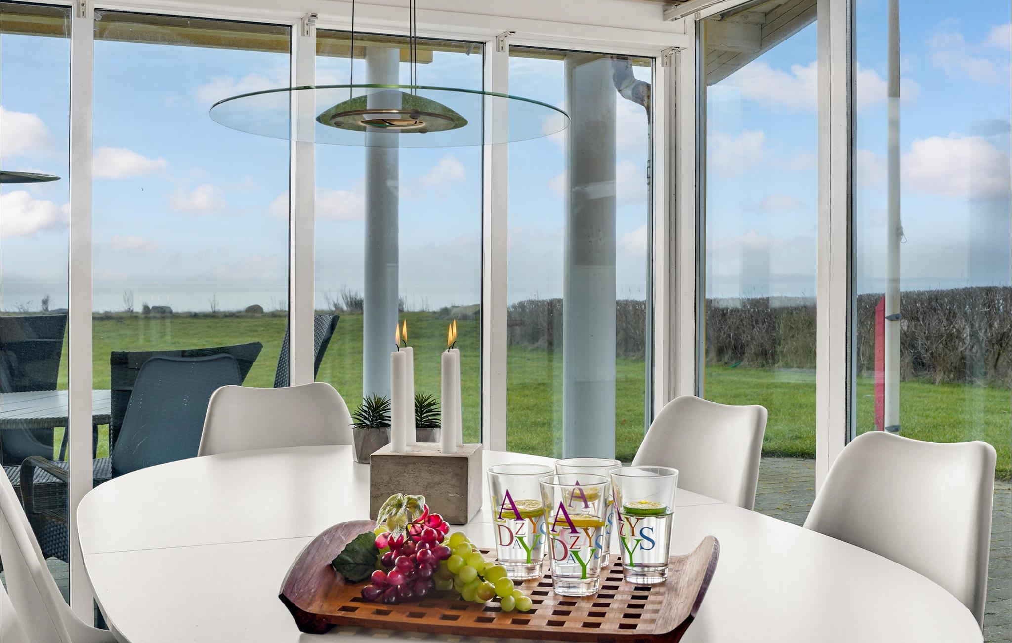 Dette skønne feriehus byder velkommen på havnefronten. Kom her med jeres familie og mærk roen fra første øjeblik. Her kan I slappe af, lægge fødderne op i sofaen, varme jer foran brændeovnen, lave mad sammen eller spille et spil kort. Fra hele stuen har I en fantastisk udsigt over fjorden. Træd ud på terrassen, som inviterer jer til at blive hængende og forbinder hovedhuset med annekset. Nyd jeres morgenkaffe eller aftenøl på en af terrasserne, mens I nyder grillmad og kvalitetstid med jeres kære.