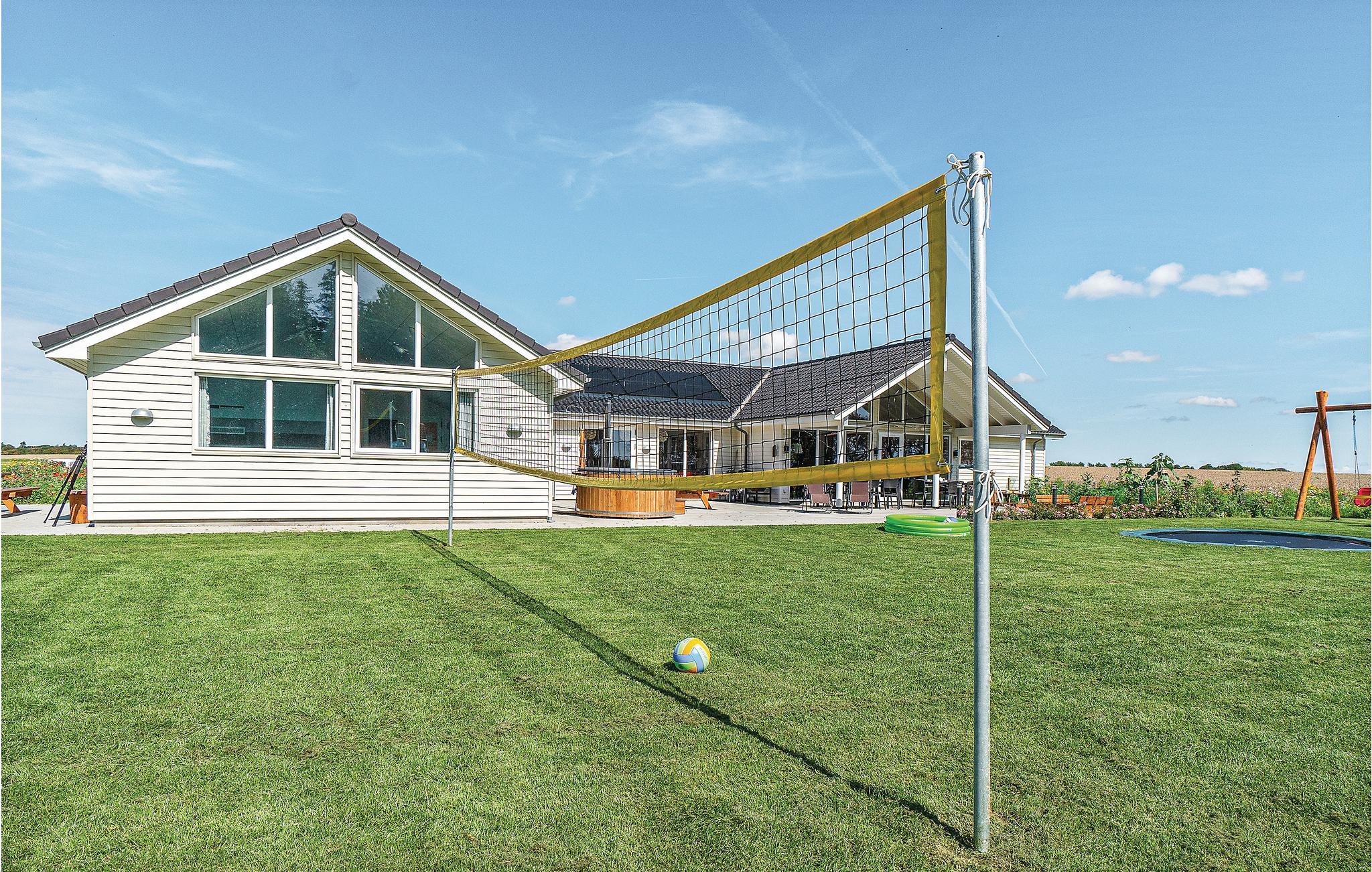 Søger I et fantastisk swimmingpoolhus til ikke mindre end 22 personer med mange aktivitetsmuligheder både inde og ude, nær Limfjordens badevenlige strande, så er dette helt sikkert huset for jer. Her er komfort og kvalitet i højsædet. Indgangsdørene har ramper, der er ingen dørtrin og to af soveværelserne med tilhørende badeværelse er ekstra store. Det store badeværelse har et handicaptoilet og åben bruseplads. Børnefamilier vil også finde det udstyr de har brug for, sådom pusleplads, babybadekar, vaskemaskine og tørretumbler.