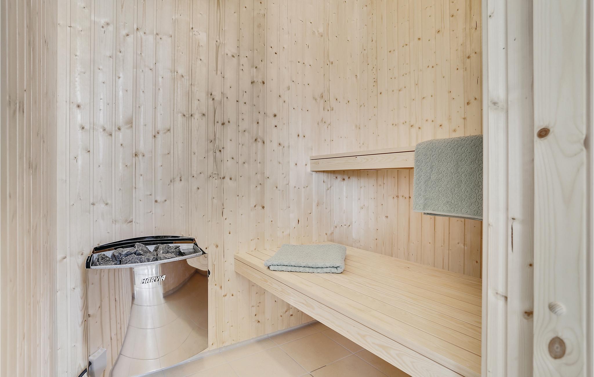 Dette skønne sommerhus, til ikke mindre end 18 personer, er indrettet med syv gode soveværelser fordelt i to afsnit, samt fire sovepladser på hemsen, tre badeværelser, et stort veludstyret køkken og en lys stue, et aktivitetsrum med bl.a. billard, bordtennis, dart, Wii mm., samt en bar, hvorfra I kan servere de skønneste drinks. Derudover har huset et dejligt swimmingpoolområde med rutsjebane, fire personers spa og sauna. Huset ligger i en ny udstykning tæt på Hostrup strand, gå blot få minutters ned af vejen og vær nede ved den børnevenlige Limfjord. For enden af vejen er der indrettet fælles legeplads, som børnene kan gå ned til uden de skal ud på en trafikeret vej og få kilometer fra huset er en naturlegeplads. Sommerhusområdet er dejligt roligt og omgivet af natur, men ligger ikke langt fra Skive og Holstebro, med stort udvalg af butikker, restauranter og cafeer.