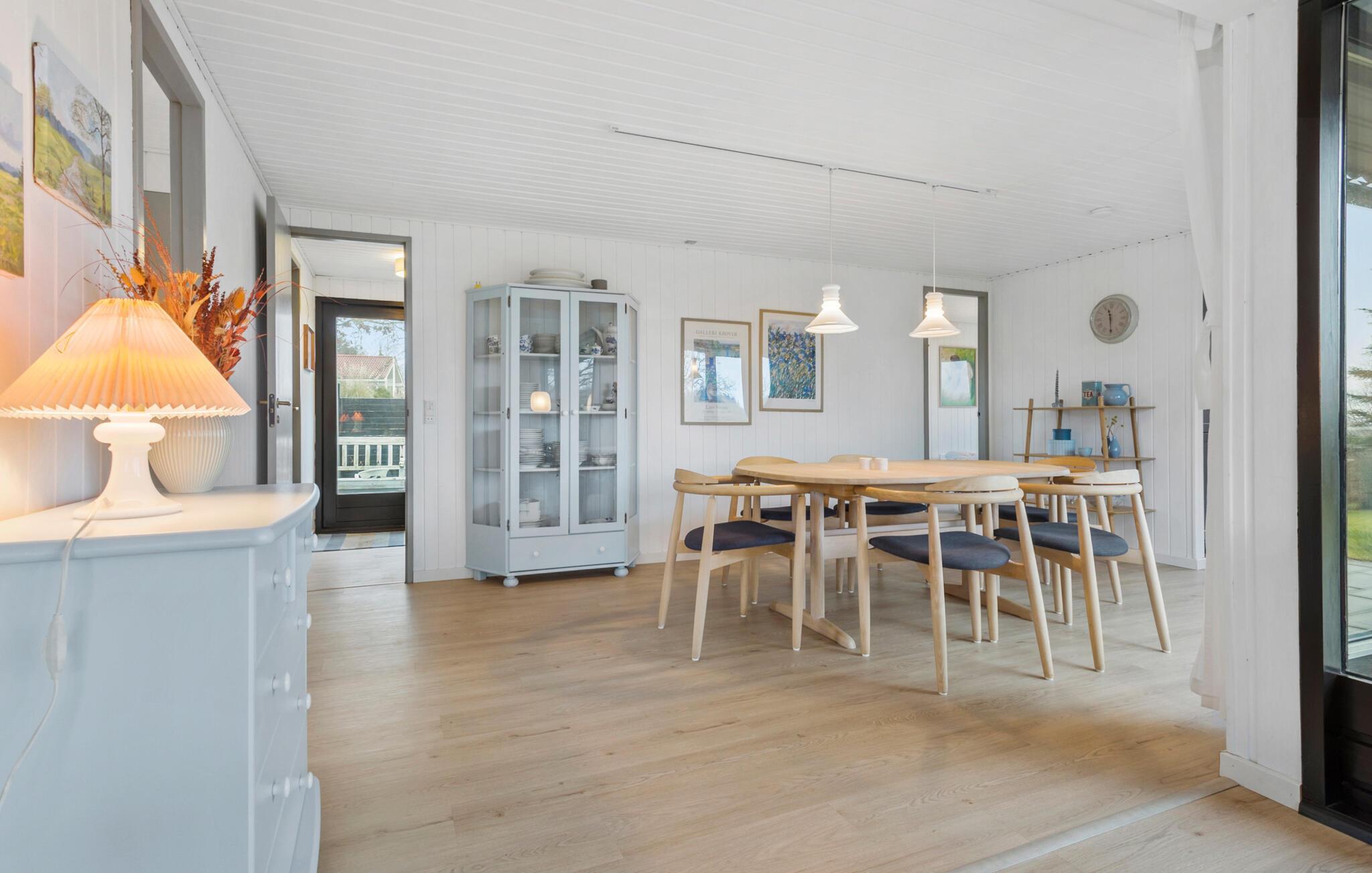 Glæd jer til nogle afslappende dage i dette velindrettede feriehus. Den lyse atmosfære, kombineret med varme træelementer og stilfulde møbler gør boligen ekstra hyggelig. Den åbne opholdsstue med brændeovn lægger op til hyggestunder, mens store vinduespartier giver udsigt til haven. Der er flere terrasseområder udenfor - nyd jeres morgenmad i morgensolen, slap af med en bog i skyggen eller afslut dagen med en grillmiddag, mens børnene leger på græsplænen.