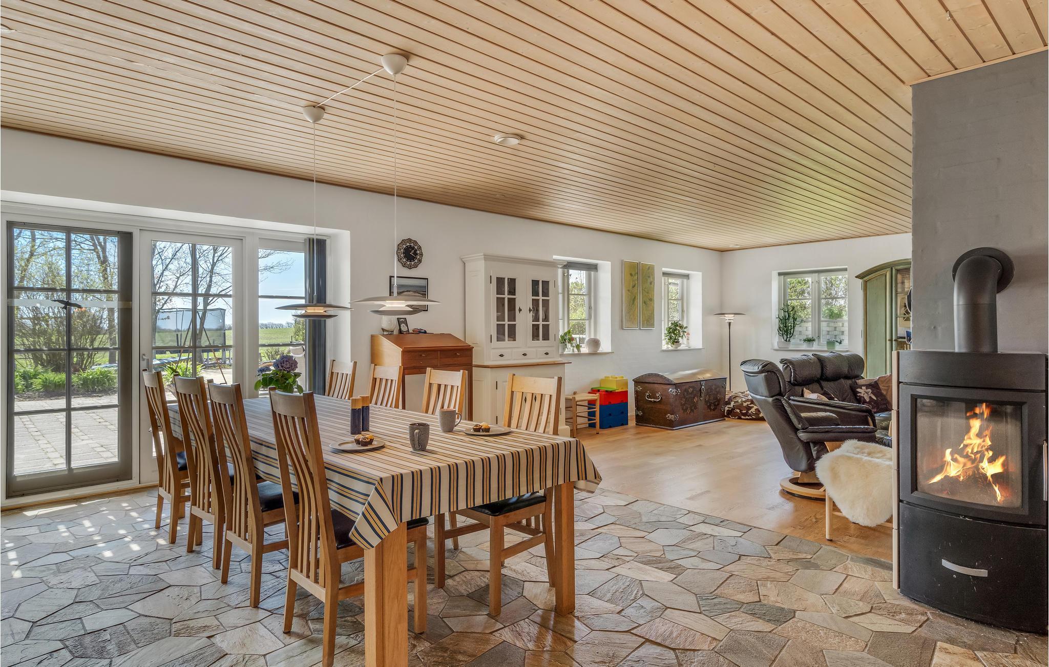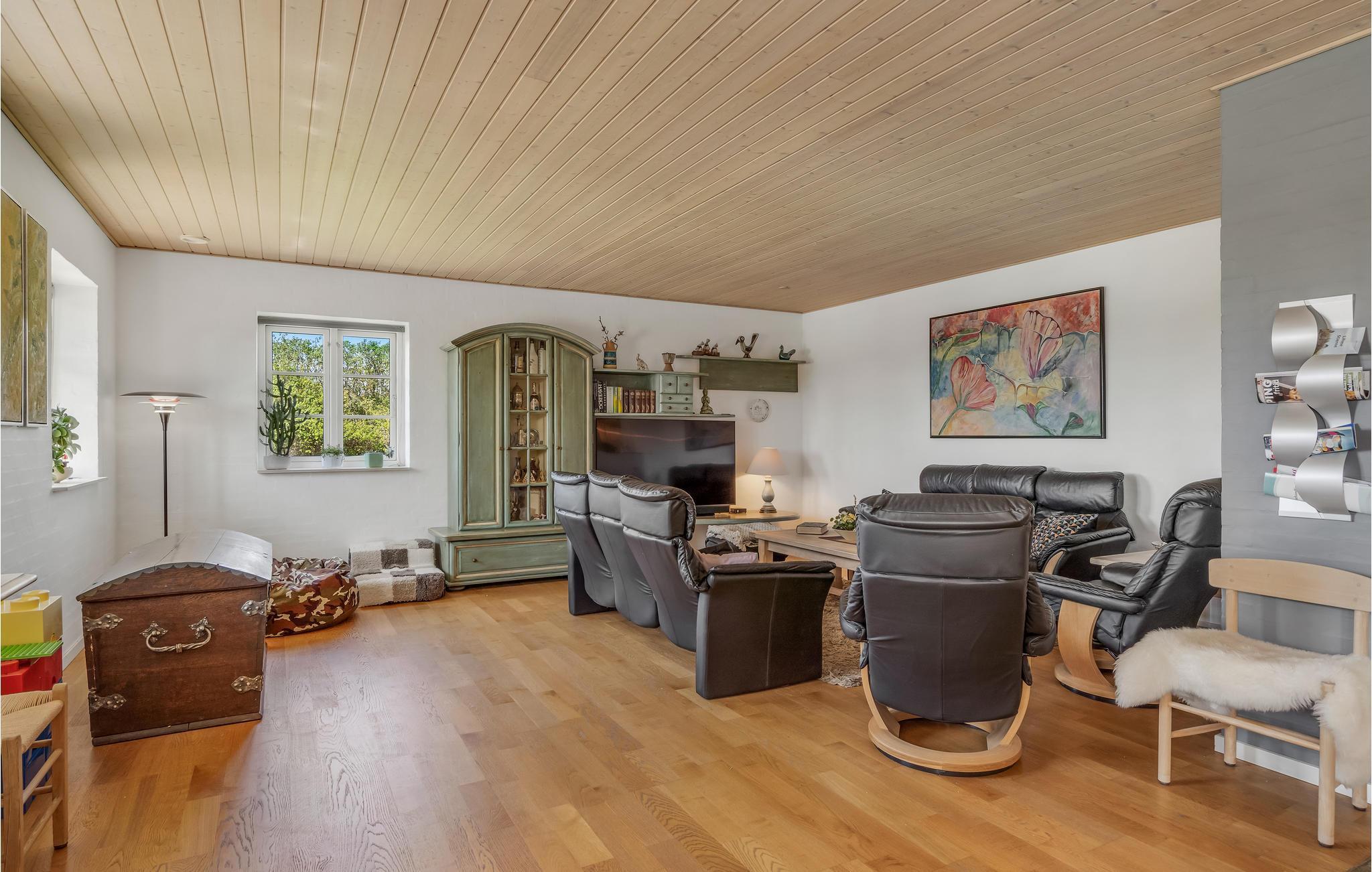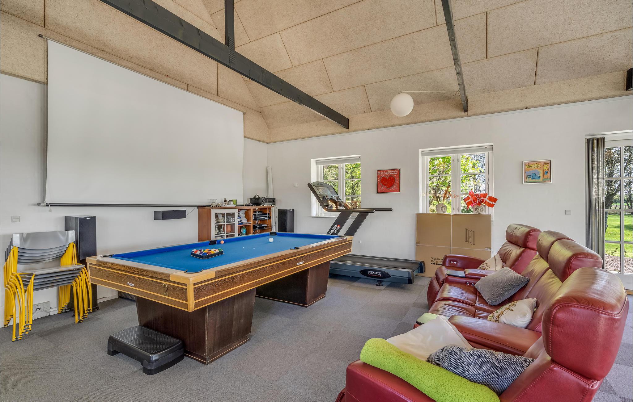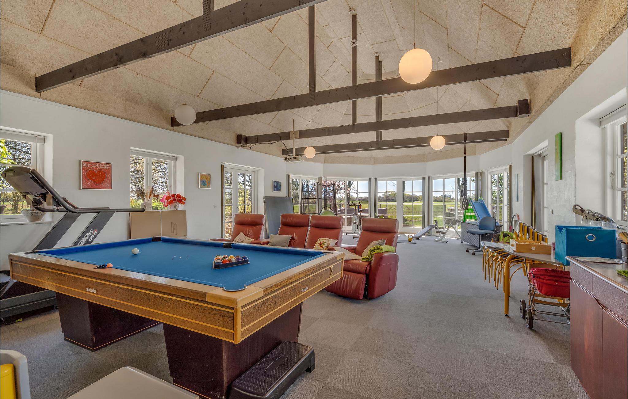I dette attraktive, rummelige og ikke mindst børnevenlige hus vil I føle jer hjemme på alle tider af året. Det byder jer velkommen på en idyllisk beliggenhed omgivet af smuk natur. I de tiltalende værelser er der plads nok til et ophold med flere generationer eller en gruppe af venner. I det store opholdsrum er alt indrettet til, at I kan nyde tiden sammen i fulde drag, hvad enten det er en familieduel ved billardbordet eller hyggelig afslapning på sofaen med en smuk udsigt over omgivelserne. Tænd op i brændeovnen om aftenen og nyd den hyggelige varme.