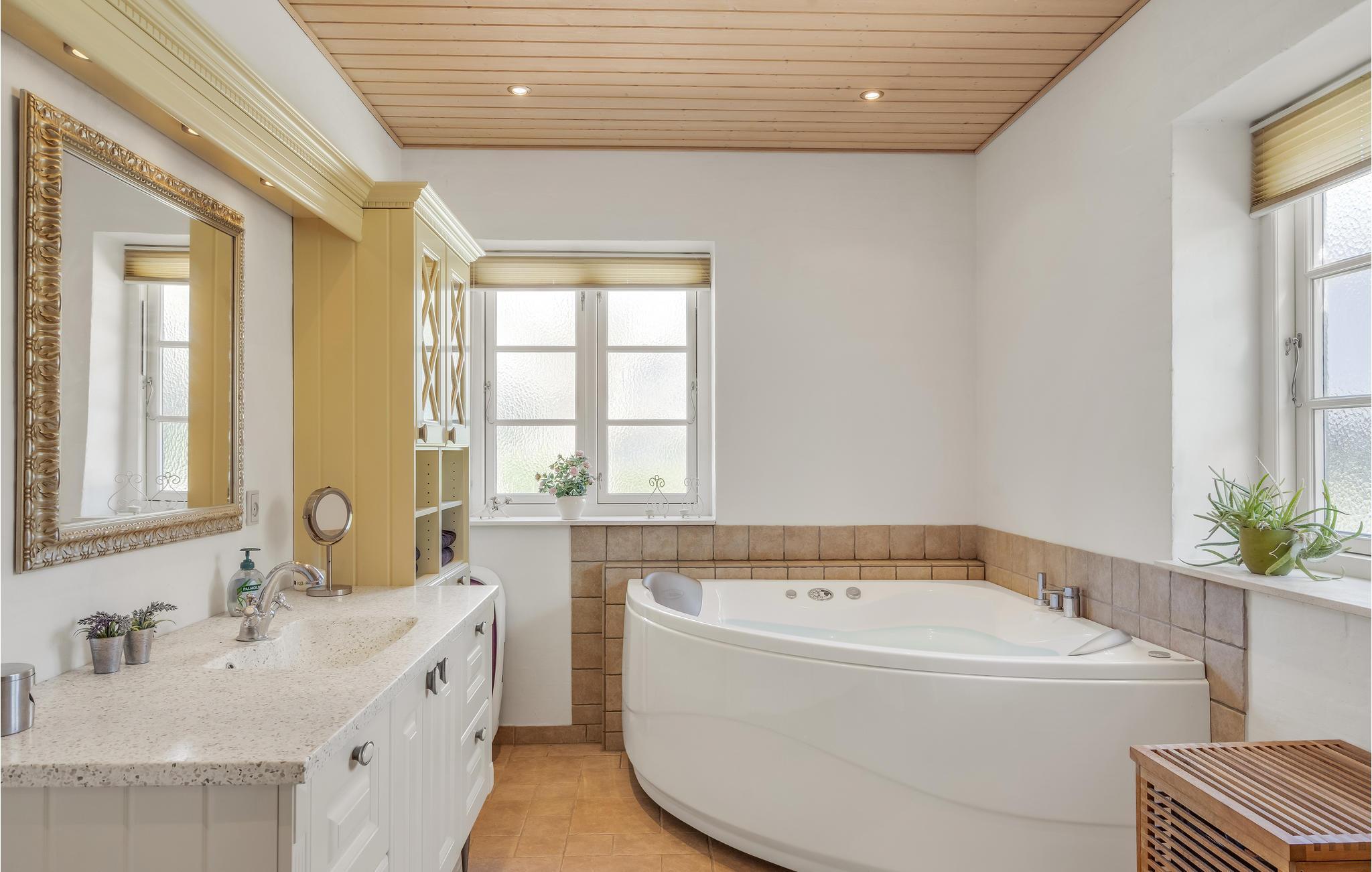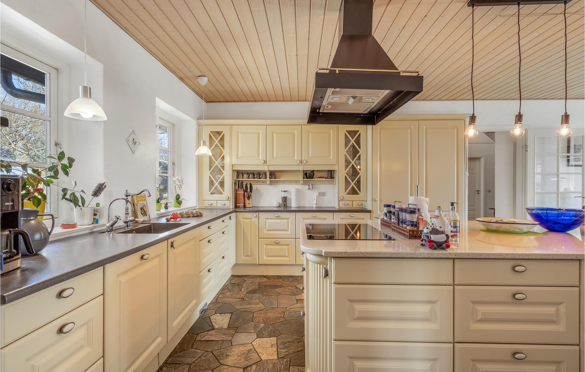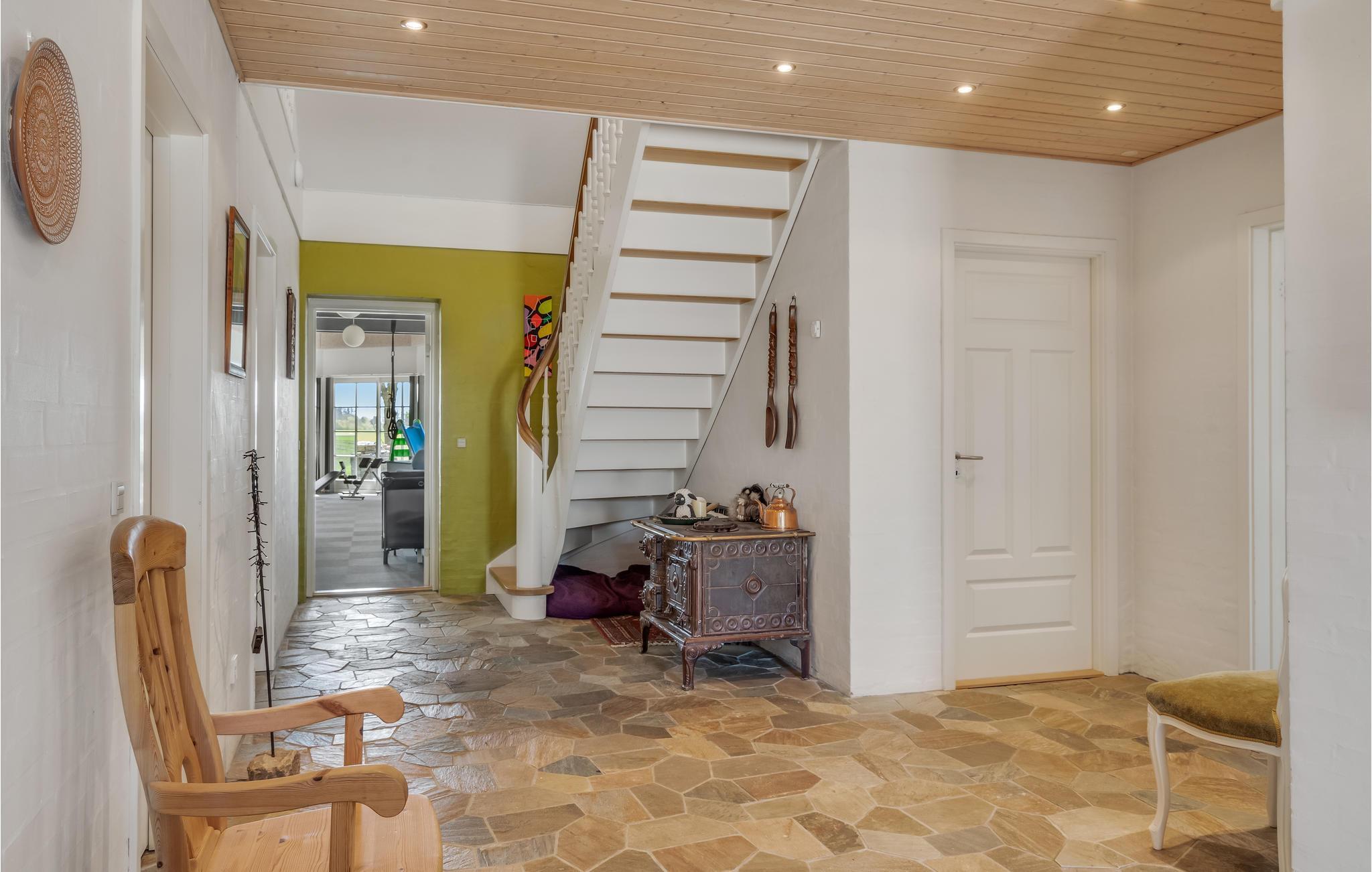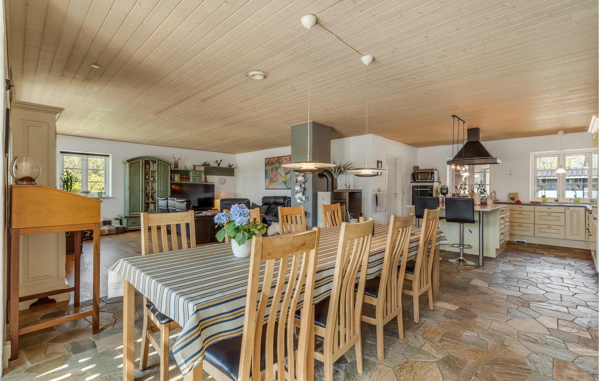 I dette attraktive, rummelige og ikke mindst børnevenlige hus vil I føle jer hjemme på alle tider af året. Det byder jer velkommen på en idyllisk beliggenhed omgivet af smuk natur. I de tiltalende værelser er der plads nok til et ophold med flere generationer eller en gruppe af venner. I det store opholdsrum er alt indrettet til, at I kan nyde tiden sammen i fulde drag, hvad enten det er en familieduel ved billardbordet eller hyggelig afslapning på sofaen med en smuk udsigt over omgivelserne. Tænd op i brændeovnen om aftenen og nyd den hyggelige varme.