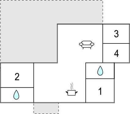 Badeværelse (nr. 2) - WC. Varmt og koldt vand. Bruser
