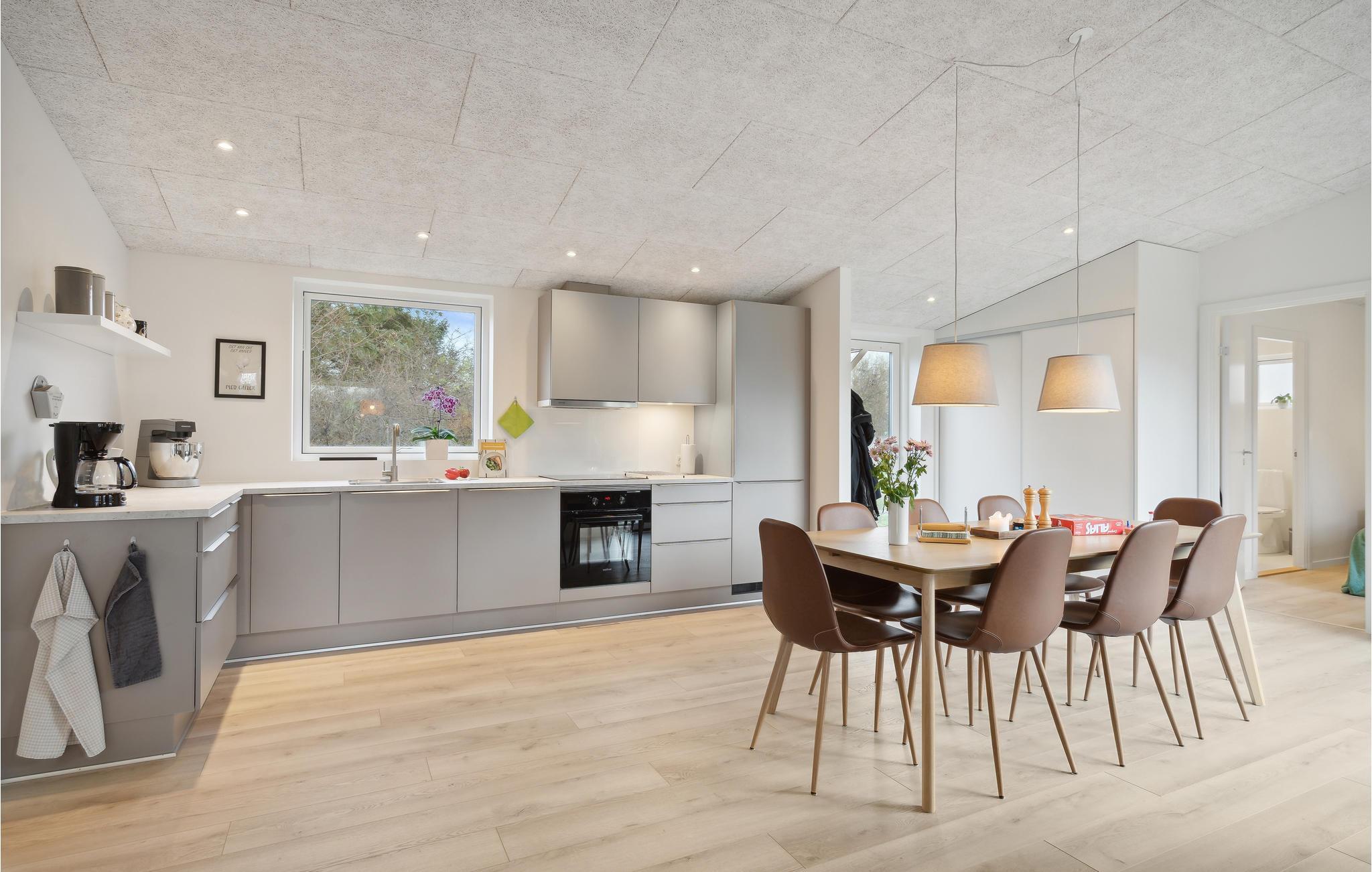 Dette rummelige, velindrettede og komfortable træhus er det ideelle sted til en ferie for hele familien. Det indbydende design, de velindrettede fællesrum og store glaspartier danner en vidunderlig ramme for familien. Hyggen vil komme af sig selv med madlavning i køkkenet, brætspil ved spisebordet eller filmaftener. Fra stuen kan I gå direkte ud på den smukke træterrasse, som giver jer masser af plads til grillaftener, solbadning og hyggestunder i solen.