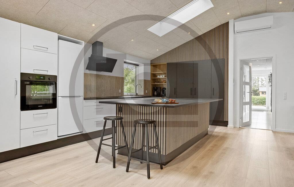 Nogle få skridt fra Limfjorden ligger dette rummelige feriehus med komfortable og stilfulde indretningsløsninger. Her kan I fylde dagene med hyggelige madlavningsprojekter og give jer god tid til samtaler rundt om spisebordet. Efter en lang dag i den friske havluft kan I fordybe jer i en god bog eller finde brætspillene frem og være fælles om en hyggelig aktivitet i stuen, mens ilden knitrer i brændeovnen. Der er også mulighed for at snuppe en omgang billard eller slappe af i saunaen.