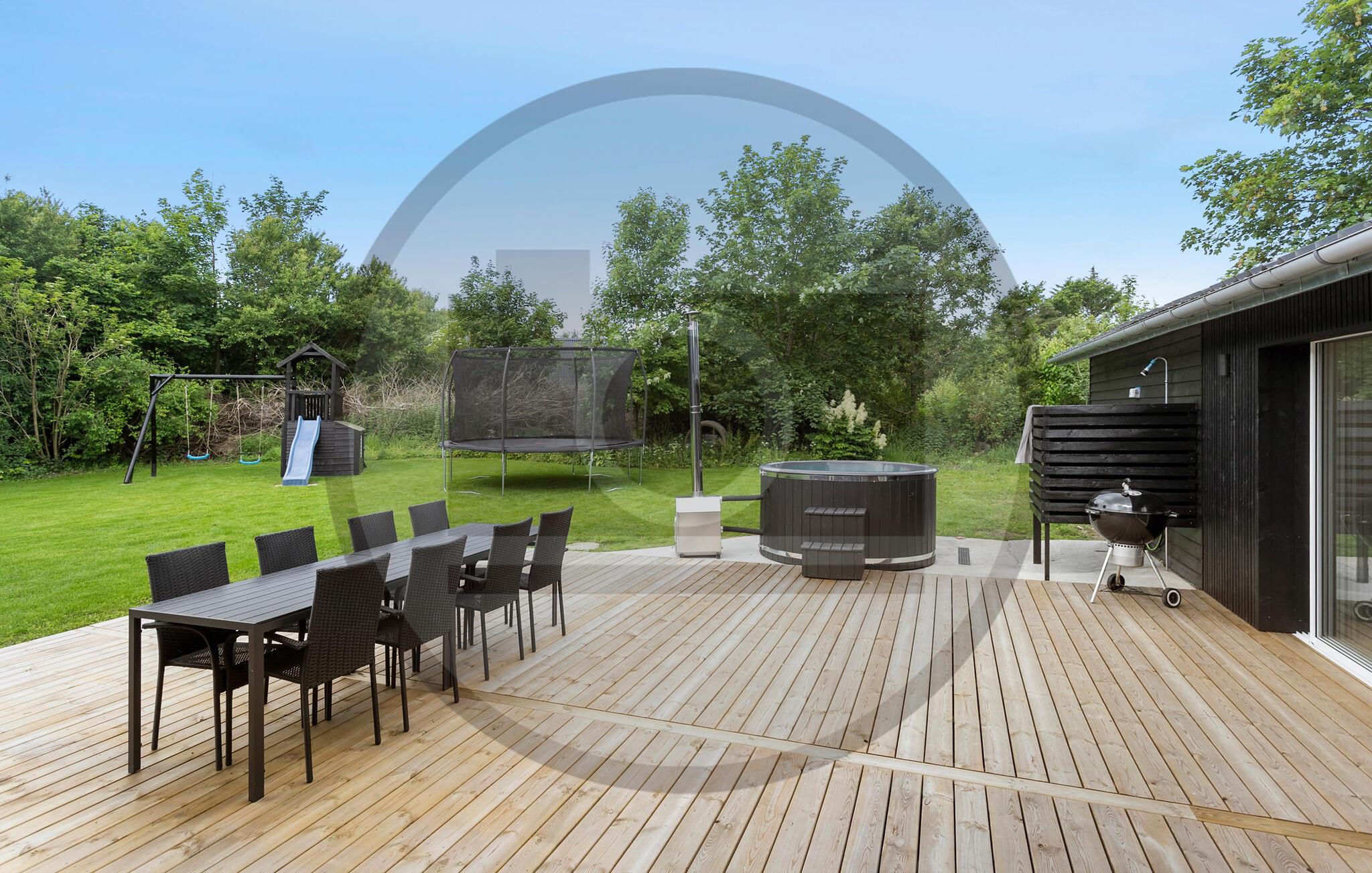 På den store, afskærmede grund kan I nyde privatlivet godt tilbagelænet i vildmarksbadet. Tænd op i grillen og dæk op til en lækker sommermiddag, mens børnene leger på græsplænen.