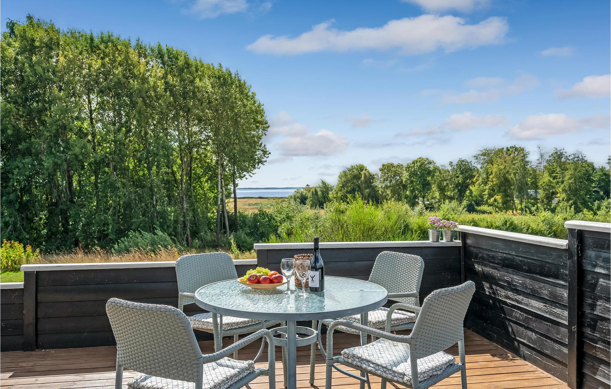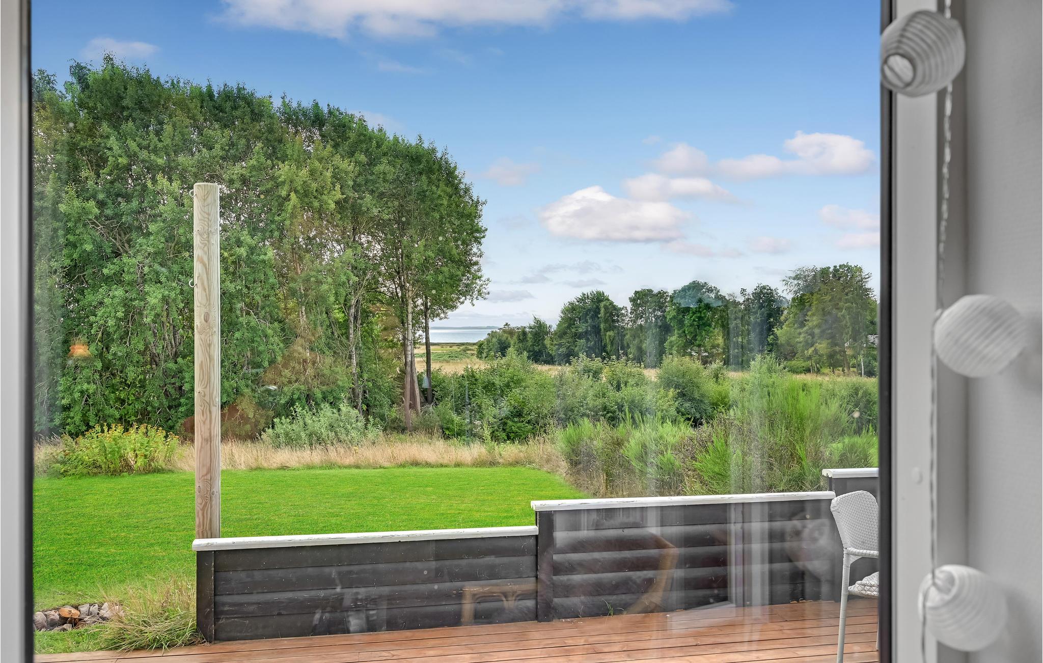 Huset er rummeligt og med stor terrasse, som har direkte udsigt. Der er to solsegl, så på solrige dage kan I skærme af både mod syd og mod vest. Der findes en sti direkte ned til vandet og til en fælles legeplads, ligesom der kun få kilometer fra huset, ligger en naturlegeplads. Hostrup Strand er et hyggeligt område med bl.a. badebro, shelters og gode naturoplevelser. Der er endvidere ikke langt til den lille hyggelige lystbådehavn i Gyldendal, hvor I også finder et godt spisested i sommerperioden. Her har I mulighed for at slappe af, være aktive i naturen og holde ferie i fredelige og naturskønne omgivelser, tæt ved fjord, fugleområder, herregårde, en borg og andre interessante, kulturelle seværdigheder.