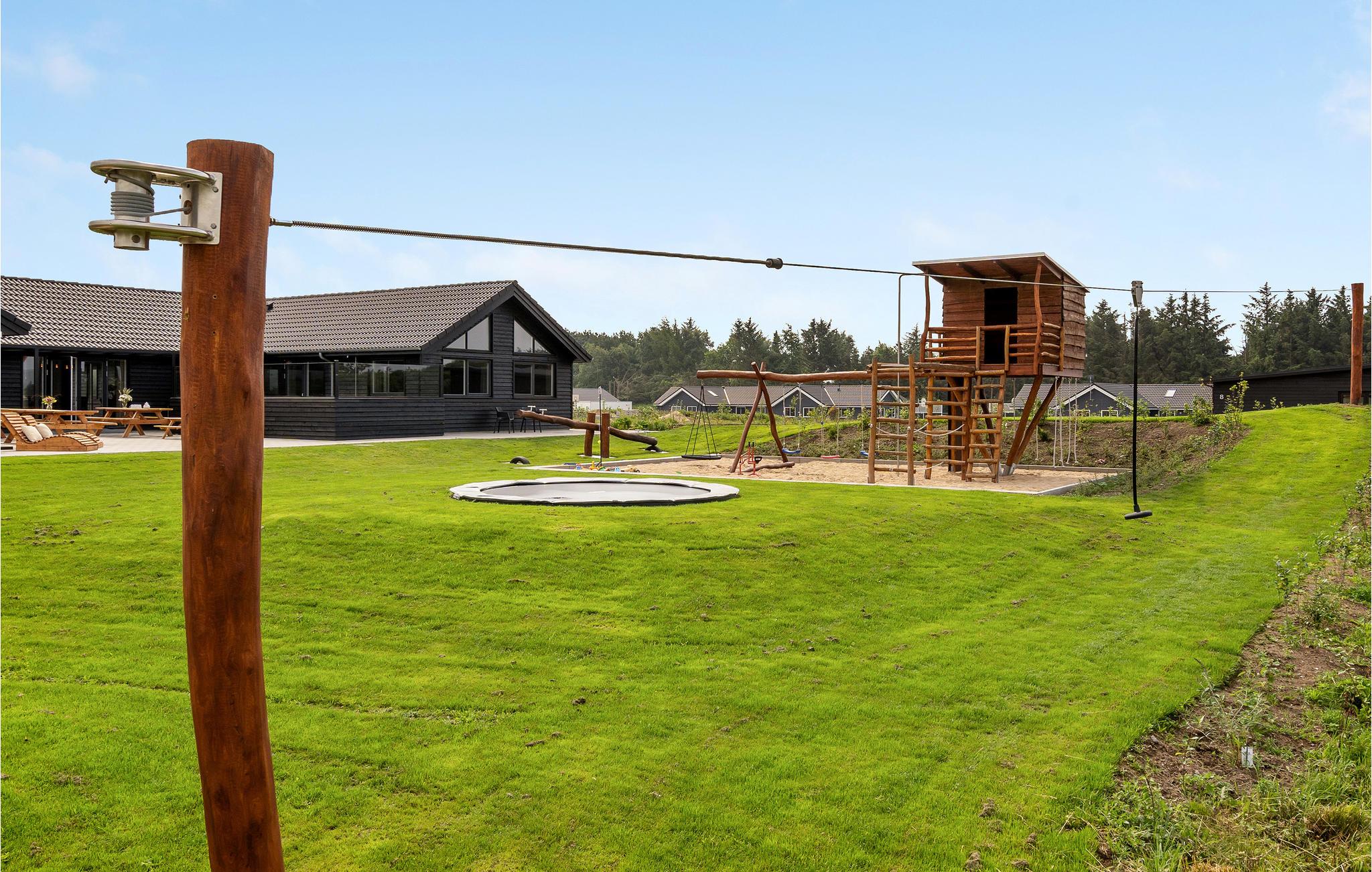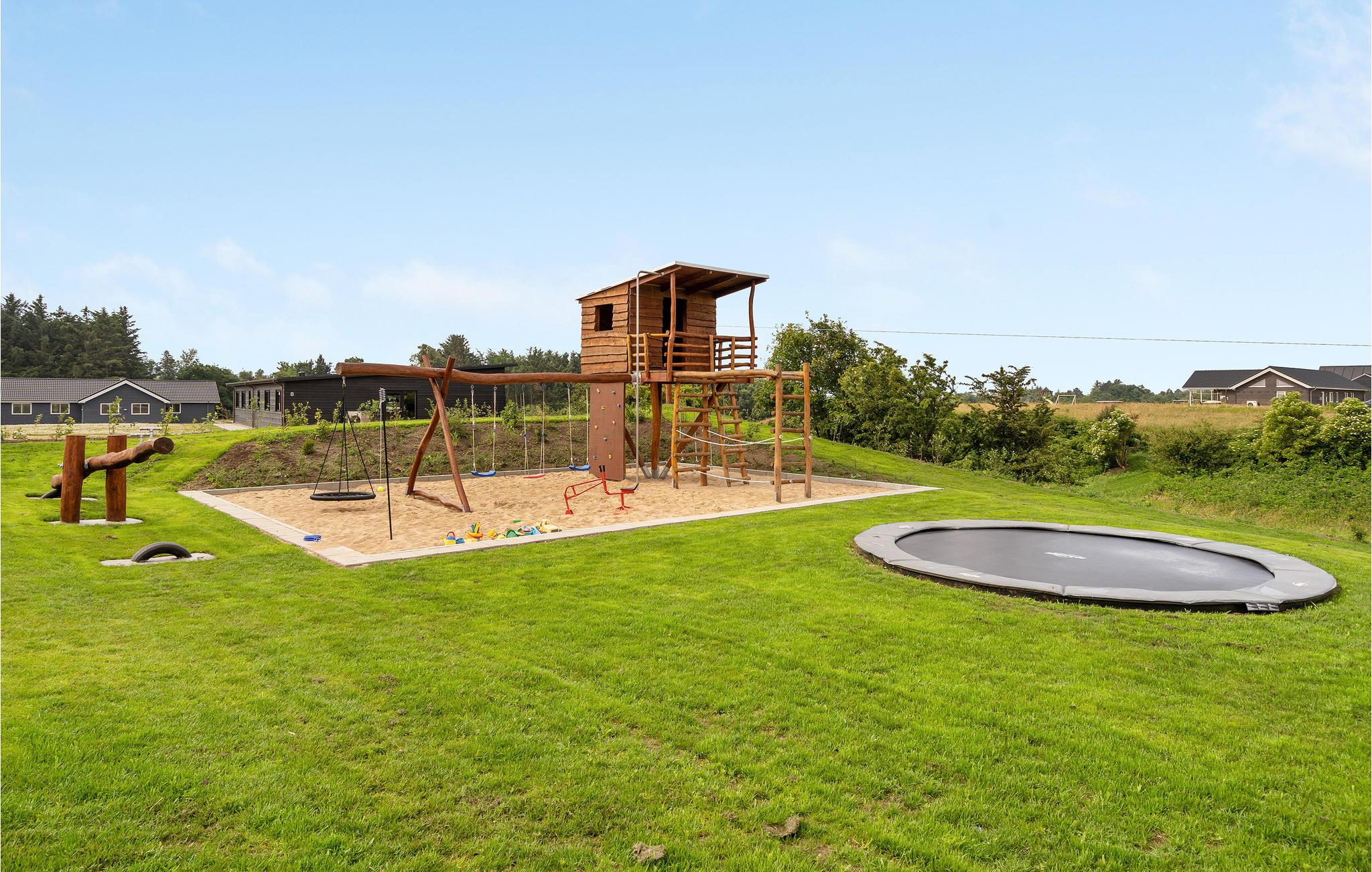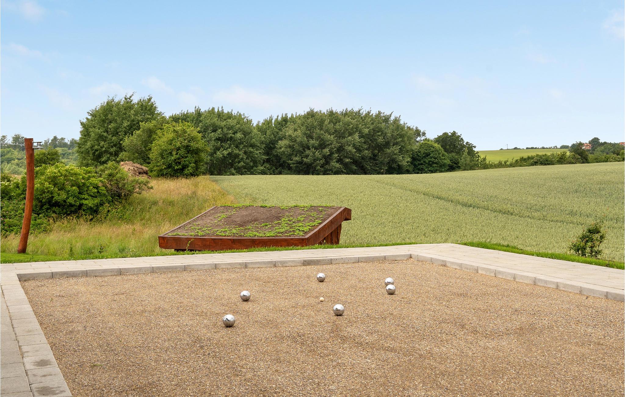 Eventyret for jeres børn fortsætter i haven. En stor legeplads venter børn i alle aldre, her er alt fra vipper til gynger! Hop og leg i sandet, her bliver det aldrig kedeligt. Mens jeres børn boltrer sig og udforsker de mange faciliteter, kan I slappe af i det udendørs spabad og nyde udsigten over naturen. I kan også spille en omgang petanque på banen lige ved siden af huset. Er der et par eventyrlystne eller naturglade gæster iblandt jer, er der også mulighed for at overnatte i eget shelter med udsigt til markerne.