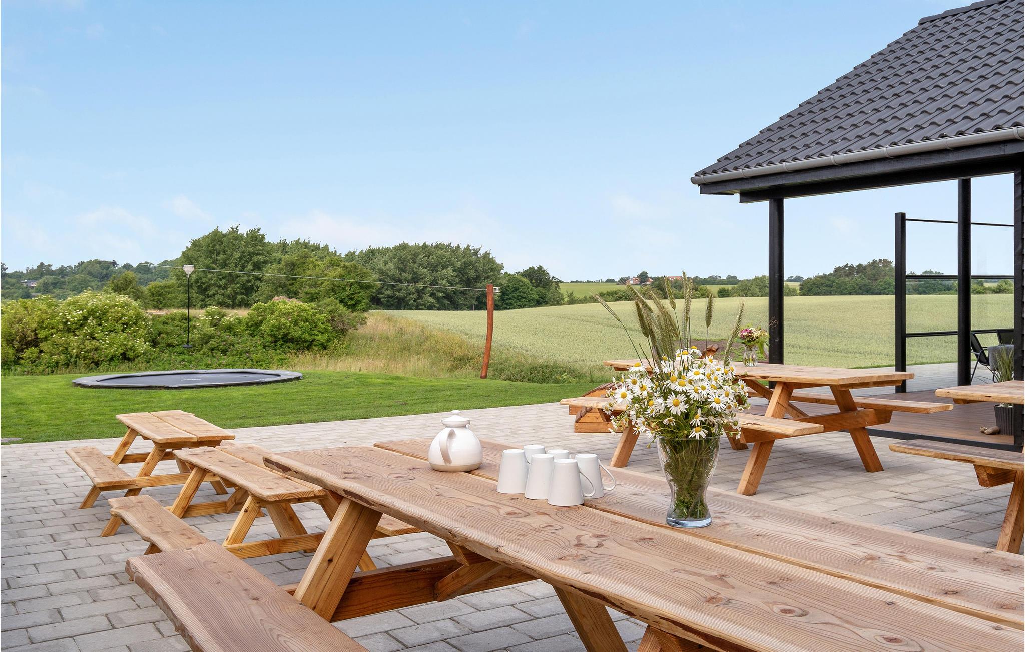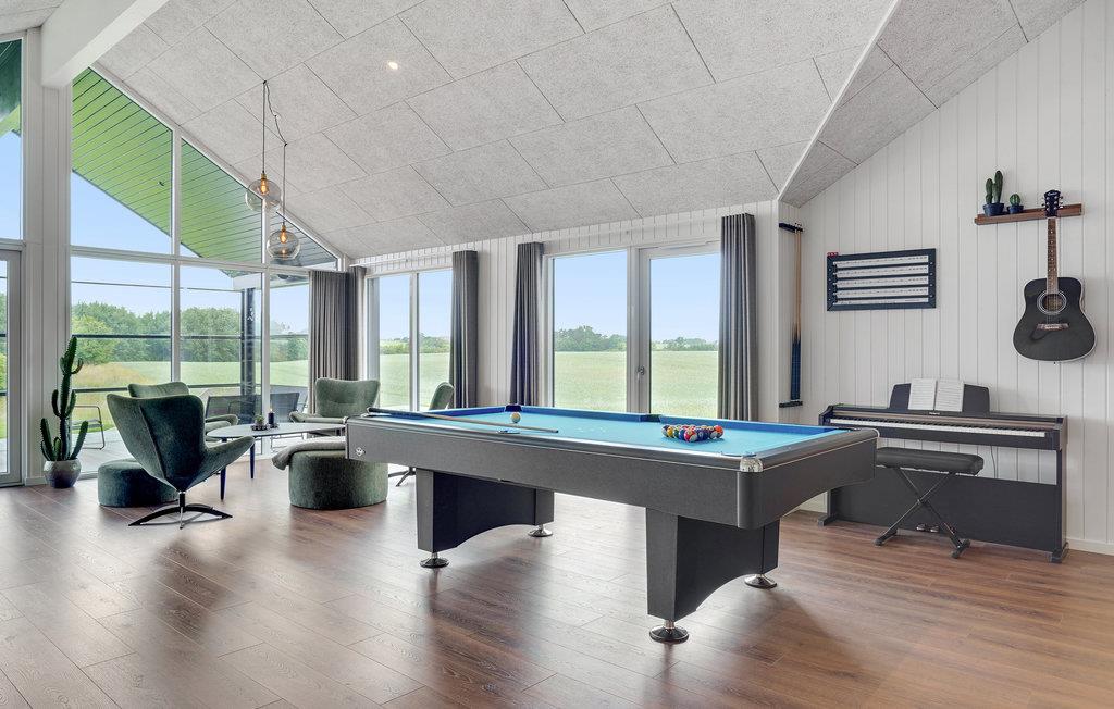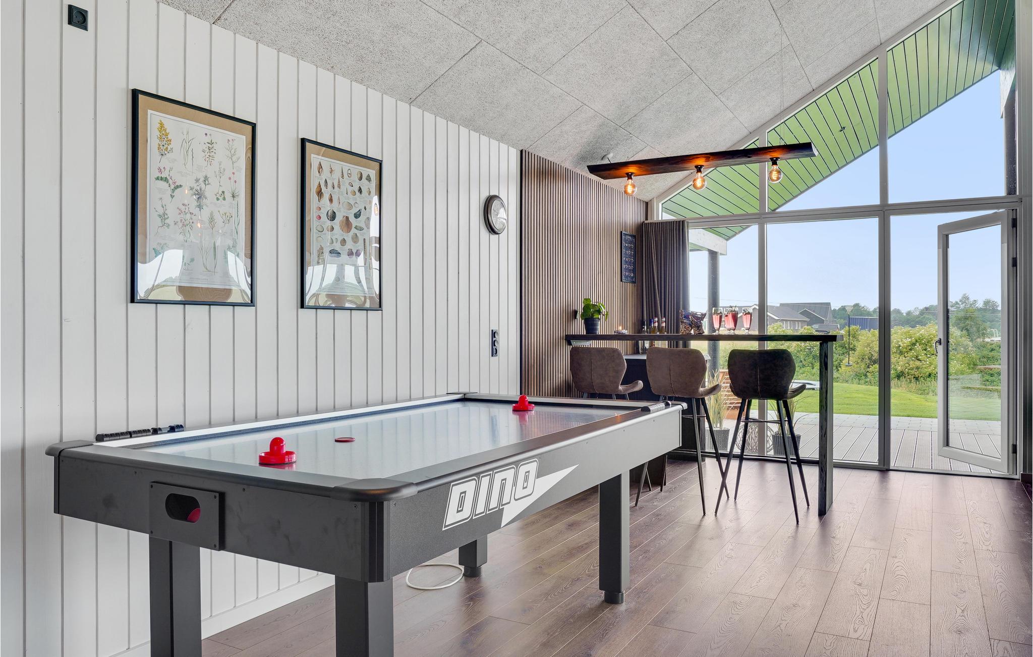 Leder I efter en komfortabel bolig, der tilbyder jer masser af plads og et varieret underholdningsprogram? Så har I fundet det helt rigtige sted. Det moderne feriehus er ideelt til jeres udvidede familie eller flere familier, der rejser sammen. Nyd jeres ophold i Hostrup, uanset årstid eller vejr, for her kommer I ikke til at kede jer. Inde i sommerhuset kan I spille musik sammen, spille bordfodbold eller arrangere billardturneringer, alt sammen i den store stue, så alle kan være med. I kan også nyde swimmingpoolen uanset vejret. Slap af i spabadet, mens jeres børn morer sig med at rutsje og spille bold i poolen.