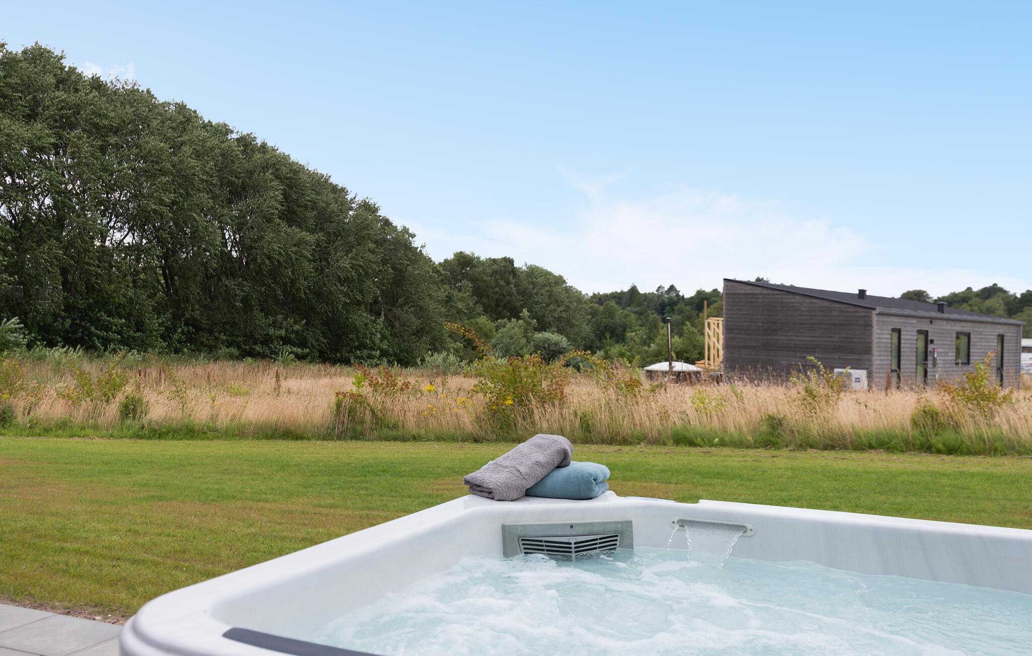 Moderne feriehus ved Hostrup Strand med sauna, udendørs spa og kort afstand til stranden.