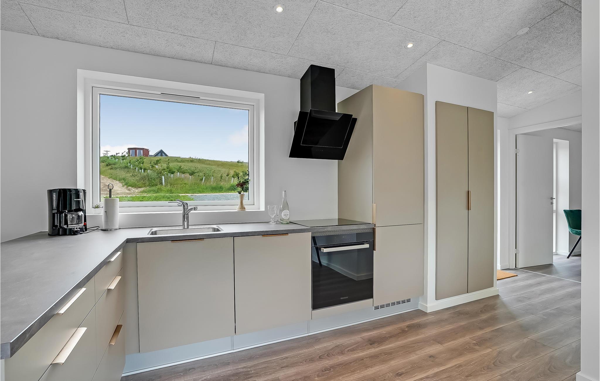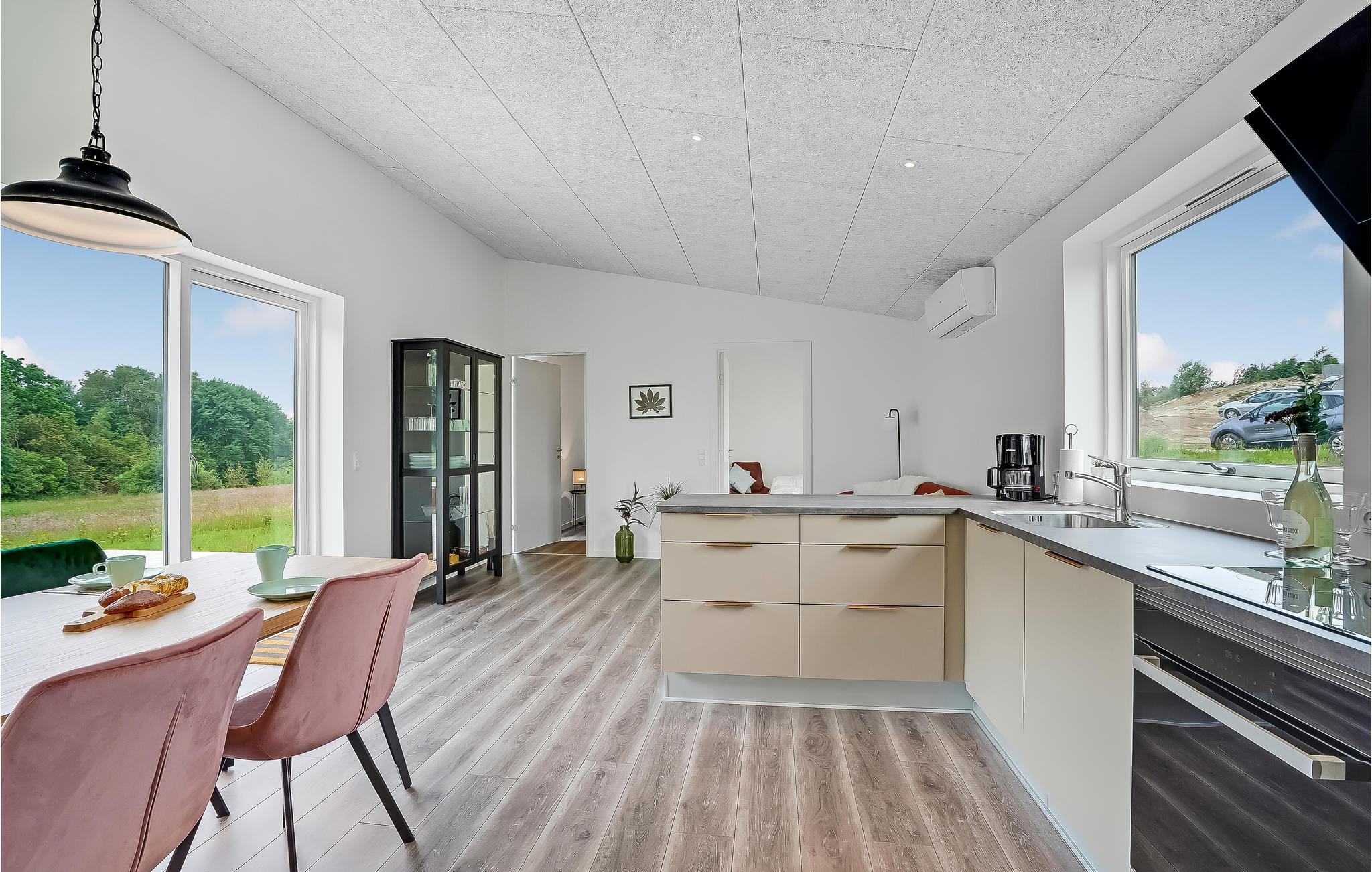 De store vinduespartier ved spisebordet sørger for en fantastisk udsigt til landskabet, og så har I også direkte adgang til terrassen herfra - derfor er stuen også et af højdepunkterne ved dette sommerhus. Det moderne udstyr og de stilfulde møbler gør det ekstra behageligt at holde ferie her.