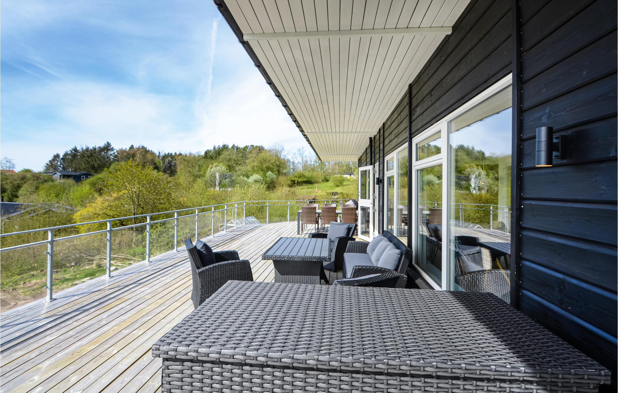 Moderne sommerhus med fjordudsigt, stor terrasse og luksuriøse faciliteter ved Hostrup Strand.