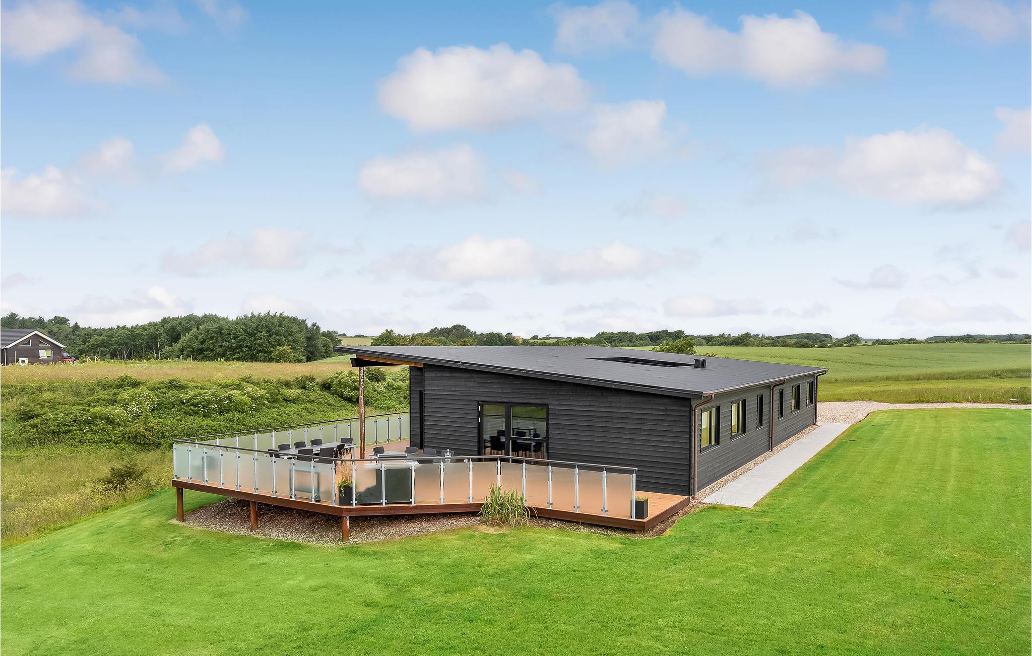 Dette ekstra store feriehus tilbyder de ideelle rammer for en vellykket ferie med mange gæster og i komfortable omgivelser. Huset ligger på en åben naturgrund med udsigt over landskabet og masser af plads til at lege og være aktiv.