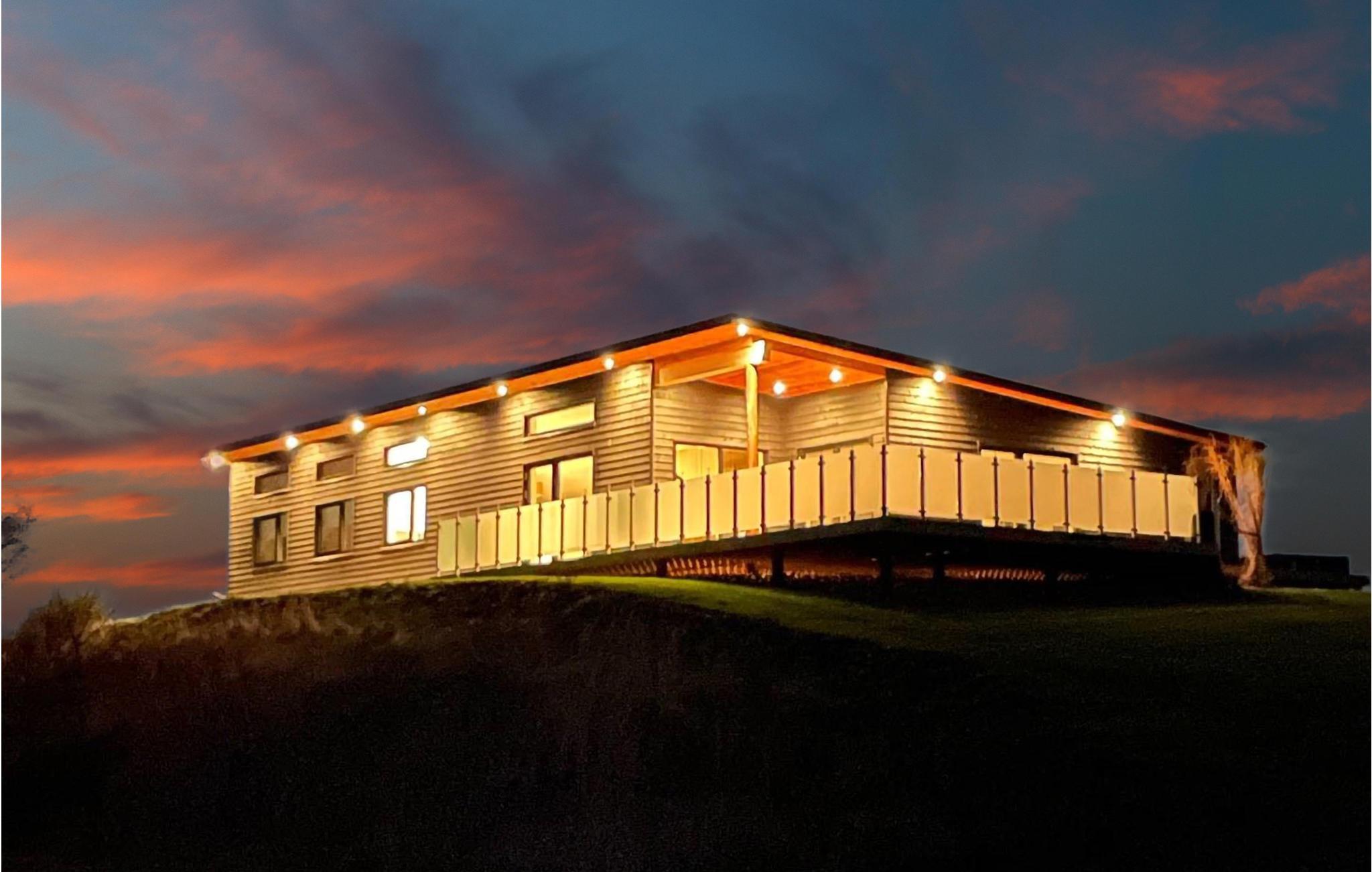 Den store træterrasse inviterer dig til at slappe af i den friske luft med udsigt over landskabet, mens børnene leger på den store græsplæne eller udforsker området. En stor udespa er placeret midt i huset, så man kan sidde her, men samtidig føle man sidder midt i huset og kan ser direkte op på stjernehimlen.