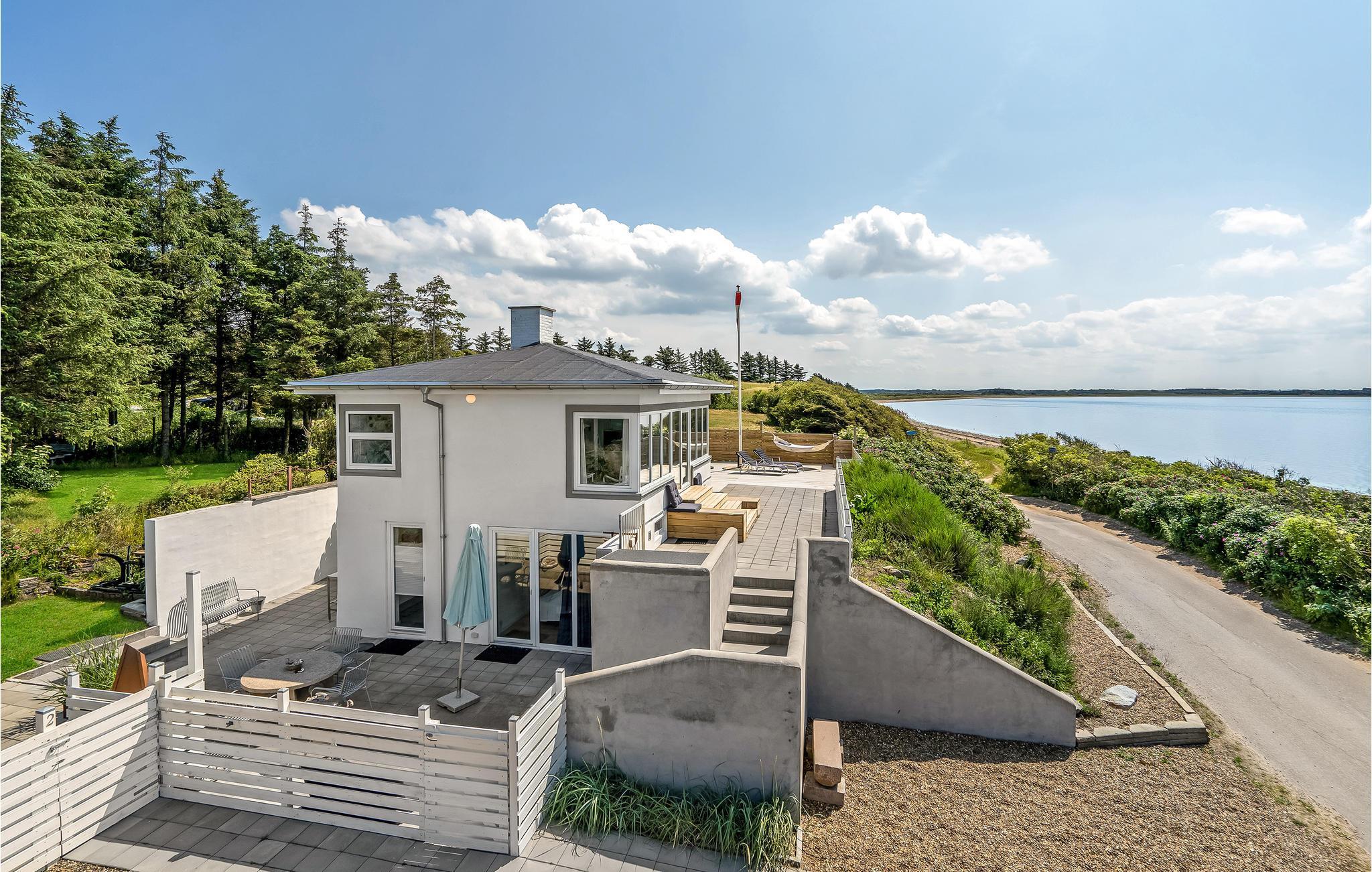 Dette skønne sommerhus imponerer med sin vidunderlige beliggenhed. Der strømmer masser af lys ind gennem de store vinduespartier, og gennem dem kan I nyde den smukke panoramaudsigt over Limfjorden. På den hyggelige terrasse kan I spise morgenmad og senere afslutte dagen med et glas vin, mens I nyder solen, den friske luft og den vidunderlige udsigt. En grill er tilgængelig til hyggelige grilaftener.
