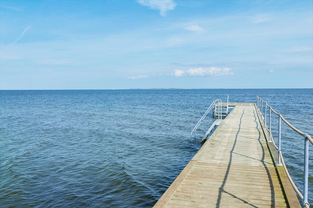 Fra sommerhuset kan man gå eller cykle langs stranden til havnen og byen. - På vejen kommer man forbi Egmont Højskolen, der er berømt for sine helt unikke muligheder for at handicappede. - Her ligger Vandhalla - den store -handicapvenlige - svømmehal, som har åbent for alle.
