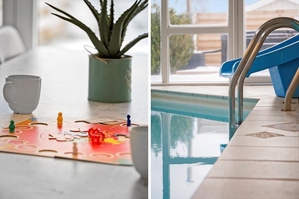 I dette lækre poolhus er der god mulighed for at den store familie eller to familier kan skabe fantastiske ferieminder. Poolen er altid 28 grader, og rutsjebanen klar til leg.