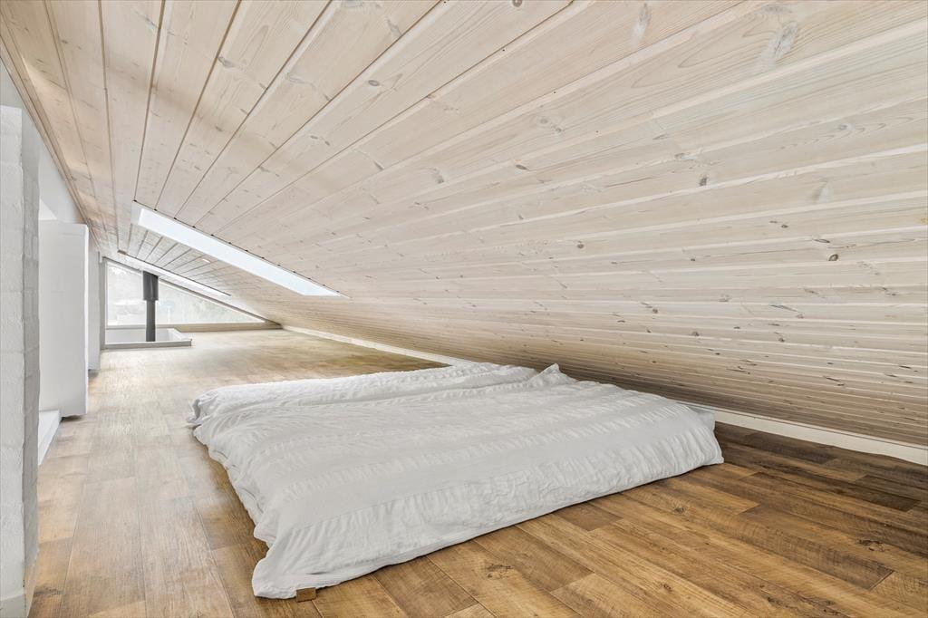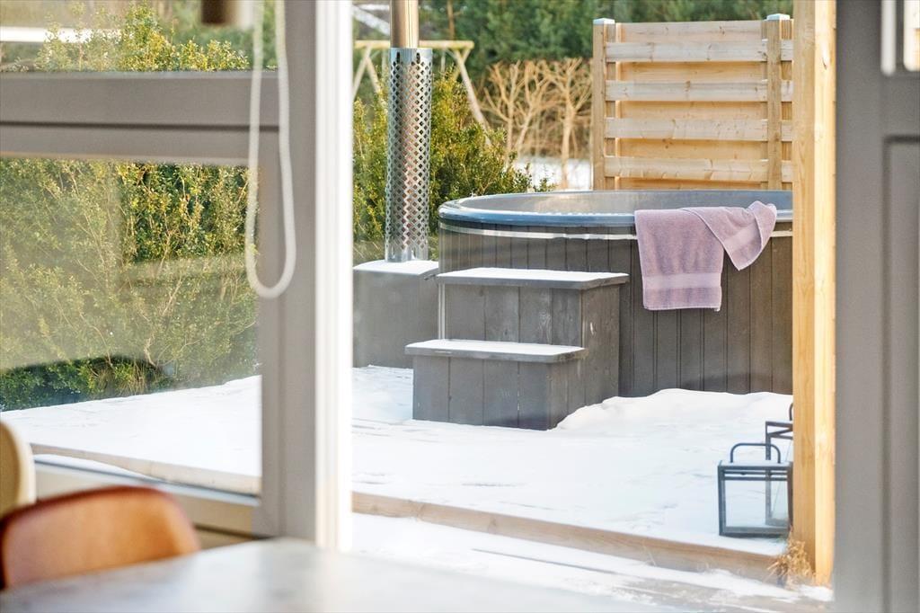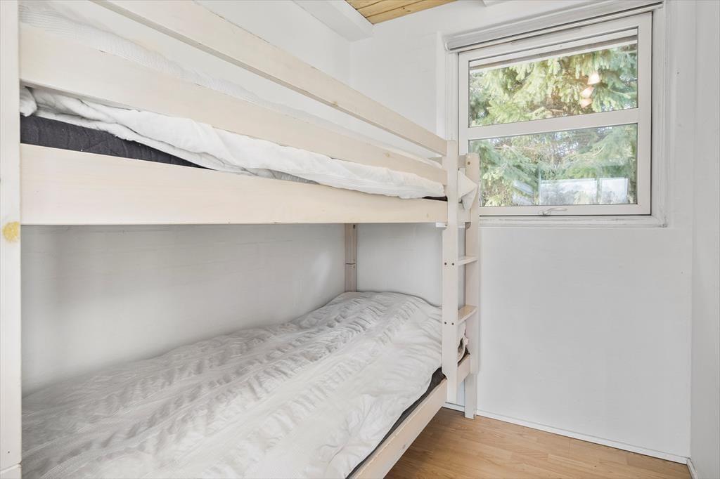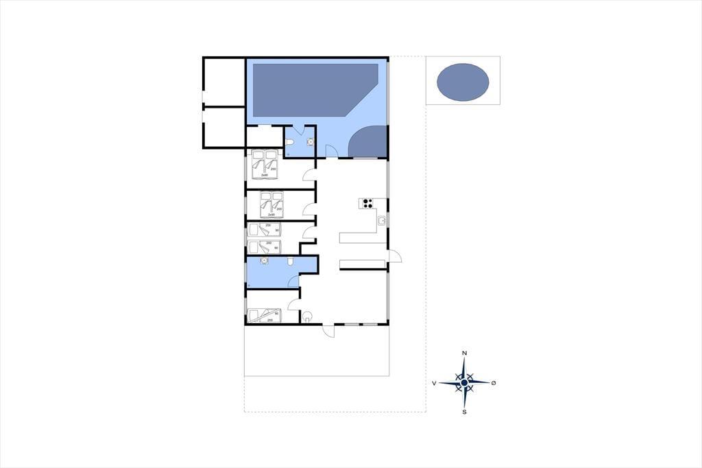 Der er 4 soverum med hhv. dobbeltseng, dobbeltseng, to enkeltsenge og køjeseng. På hemsen er der plads til yderligere to personer, men de pladser er nok primært anbefalet til familiens teenager. Der er åbent køkken mod spisestue og stue og direkte forbindelse til det skønne poolområde, som byder på sauna og direkte udgang til vildmarksbadet. Der er to badeværelser; et stort i forbindelse med værelserne og et mindre i forbindelse med poolrummet.