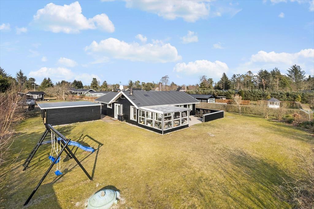 Huset har en stor lækker græsplæne, der er perfekt til alle former for leg og spil uanset alder. De mindste hygger sig med rutschebane og gynge. Den overdækkede terrasse forlænger de skønne sommeraftner, hvor man har hygget sig med en god grillmiddag og sidde og nyde de lyse aftner med et godt glas vin eller en skøn kop kaffe. Der god afskærmning for privatlivet så bedre bliver det næsten ikke - det her er stress-fri zone.