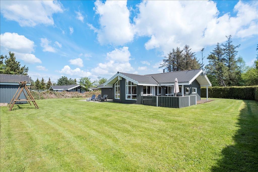 Det smukke sollys får I bestemt også mulighed for at nyde ude i det fri på den 1.250 m2 store grund. Her er der masser af plads til at boltre sig på græsplænen, der skærmes af en tæt hæk, og de yngste feriegæster kan desuden hygge sig med at gynge i solskinnet. De mere tilbagelænede stunder kan foregå på terrasserne, der ligger godt placeret rundt om huset.