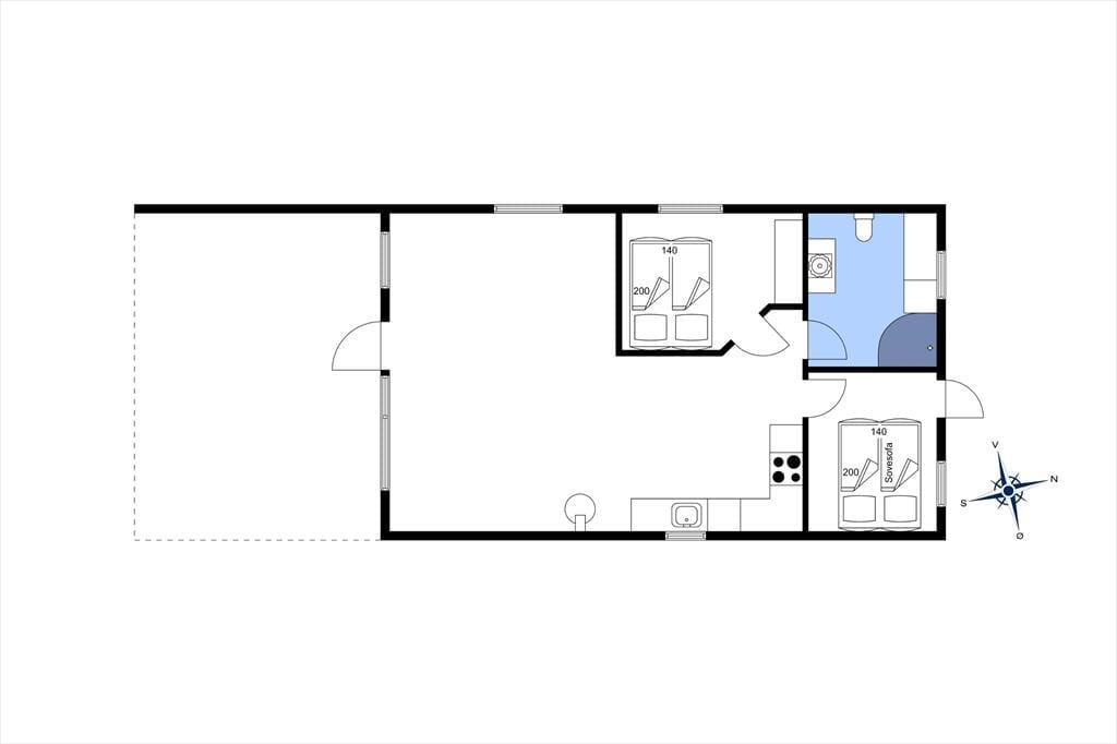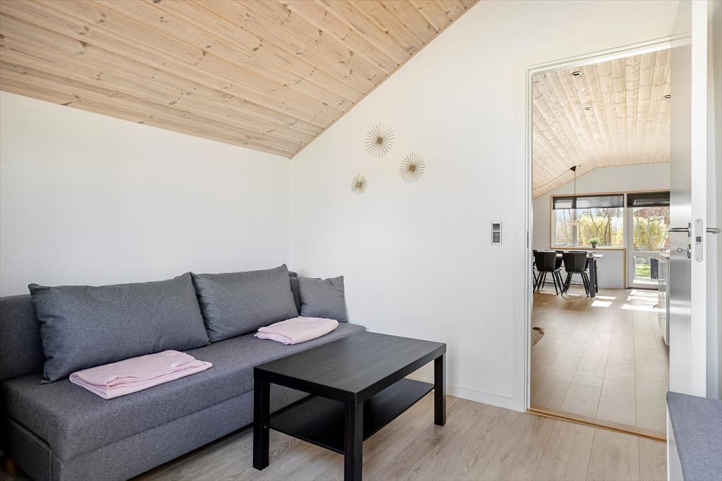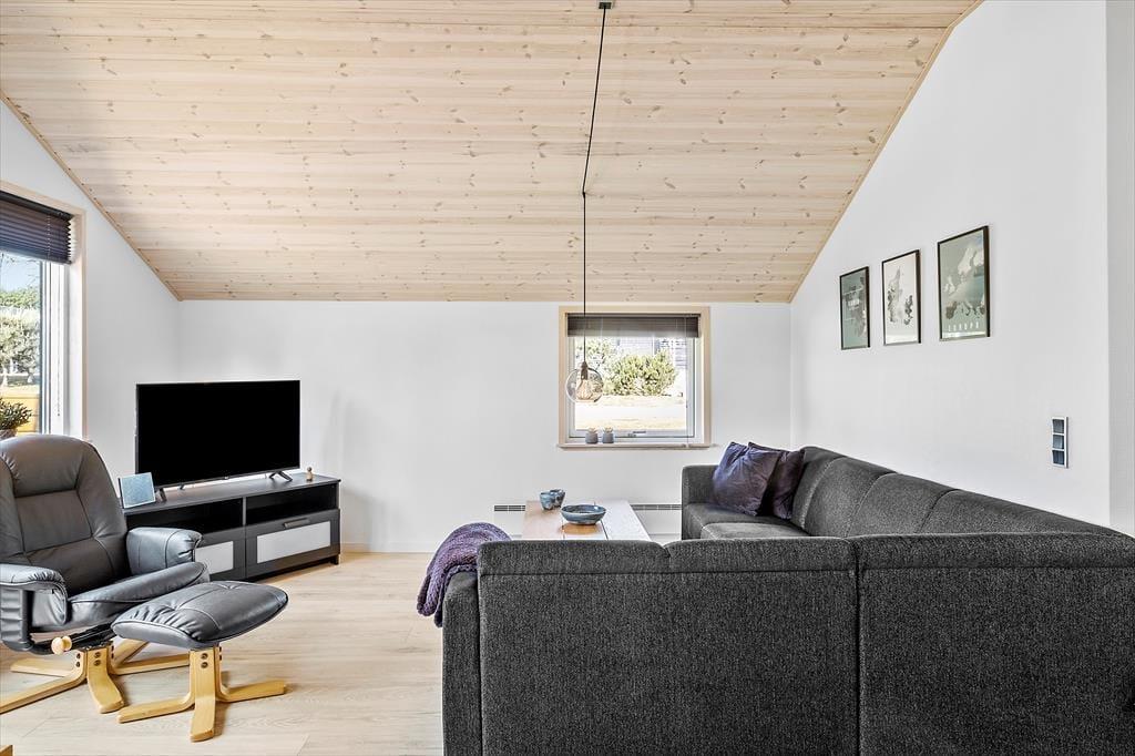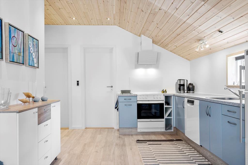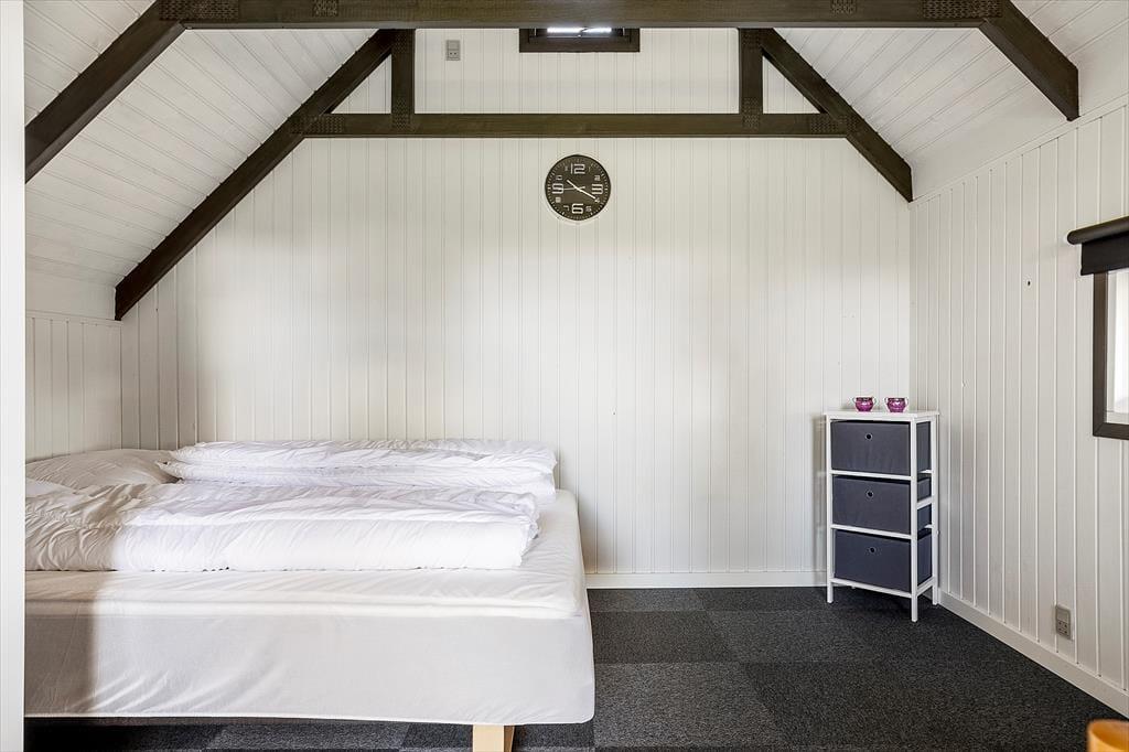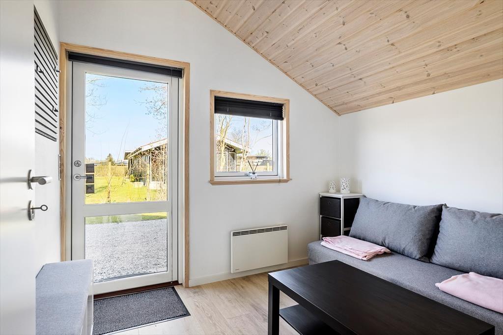 Efter den omfattende modernisering har husets indre en enkel og stilfuld fremtoning. Køkken og stue ligge samlet, så det er nemt at smutte hen for at hente mere kaffe, når I slapper af i sofaen – måske endda med en film på fladskærms-tv’et. Brændeovnen står klar til at sprede varme på kølige årstider, og på sommerlige dage kan I åbne terrassedøren, så ude og inde smelter sammen. Sommerhusets soveværelser er begge udstyret med gode dobbeltsenge, og planløsningen byder endelig på et rummeligt badeværelse med bruseniche, vaskemaskine og gulvvarme.