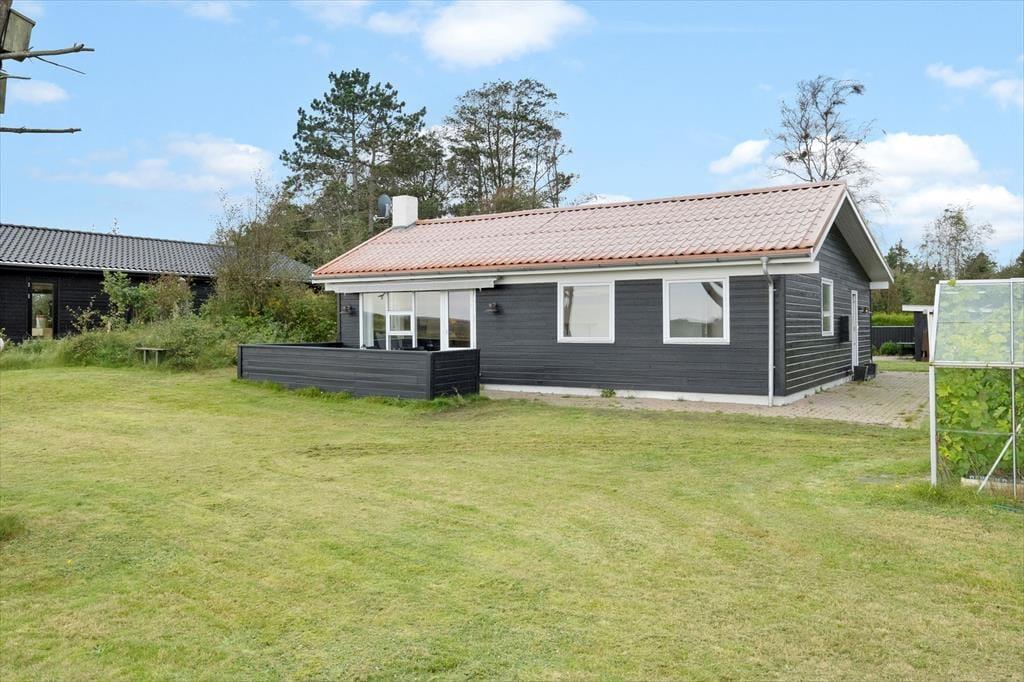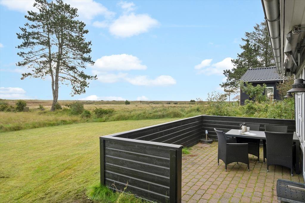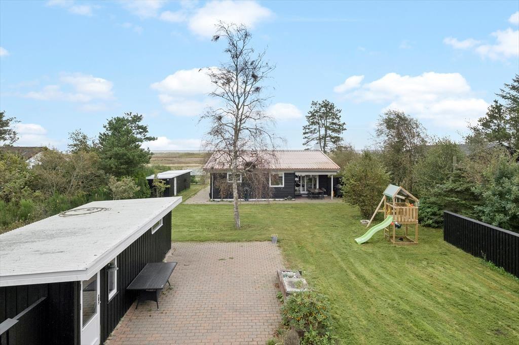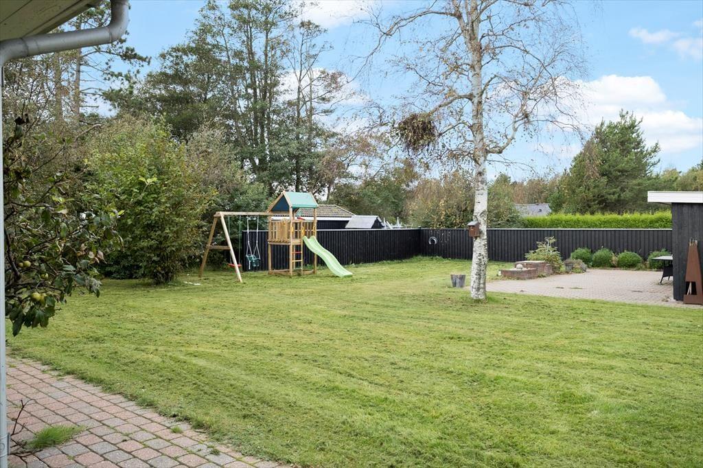 En lys opholdsafdeling, fire gode soveværelser og en skøn, grøn have med solrige terrasser og legefaciliteter. Det er blot lidt af det, der er værd at fremhæve ved dette store og indbydende sommerhus i Hou – og så har vi endnu ikke nævnt, at det ligger bare 260 meter fra stranden og med flot udsigt til havet og det flade kystlandskab.