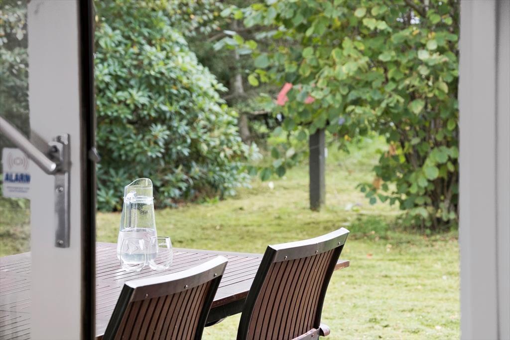 På østsiden af huset får I fuld valuta får pengene, hvis drømmen er at bo i rolige og naturskønne omgivelser, for udsigten over landskabet pynter virkelig på livet på terrassen. Det er nu også dejligt at opholde sig på terrasserne i den vestvendte del af haven – og her er der for øvrigt også en god græsplæne at boltre sig på samt et legetårn med rutsjebane og gynger.