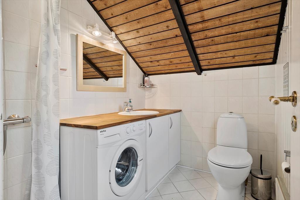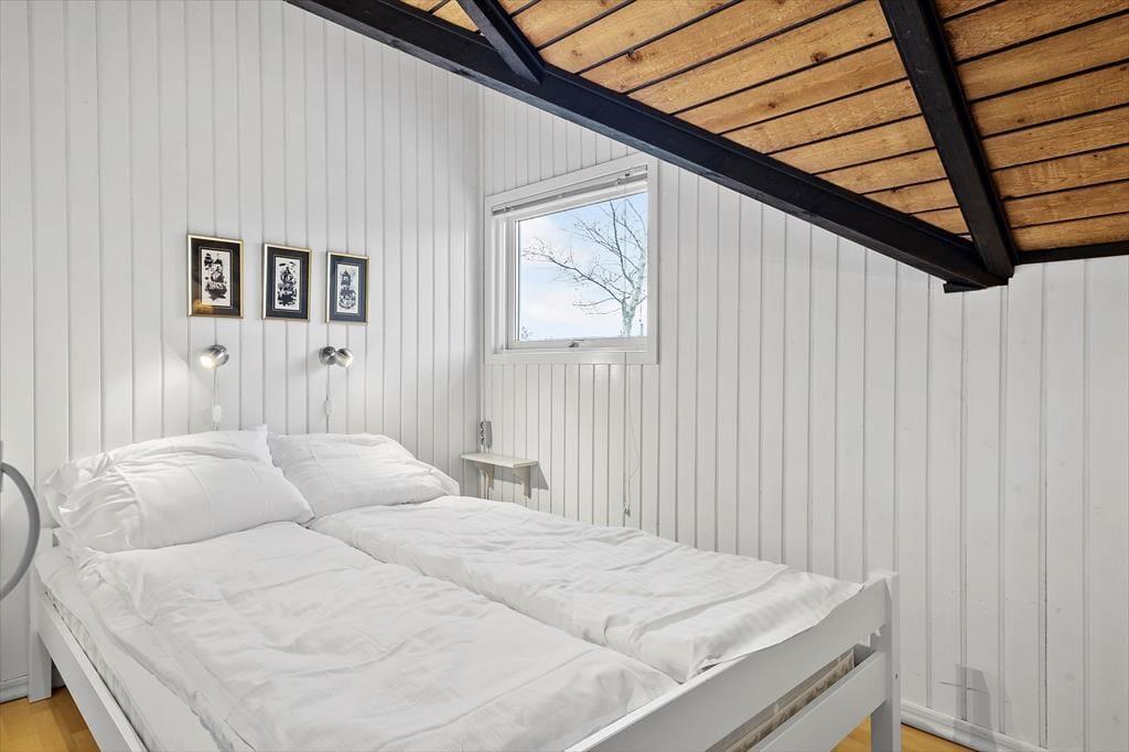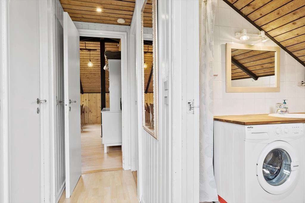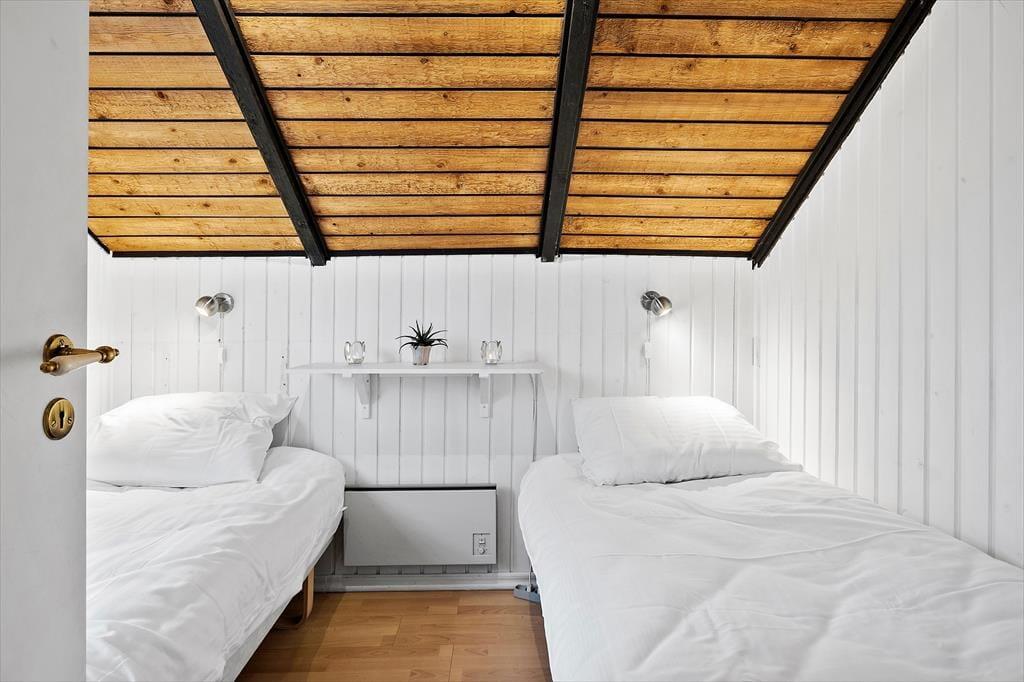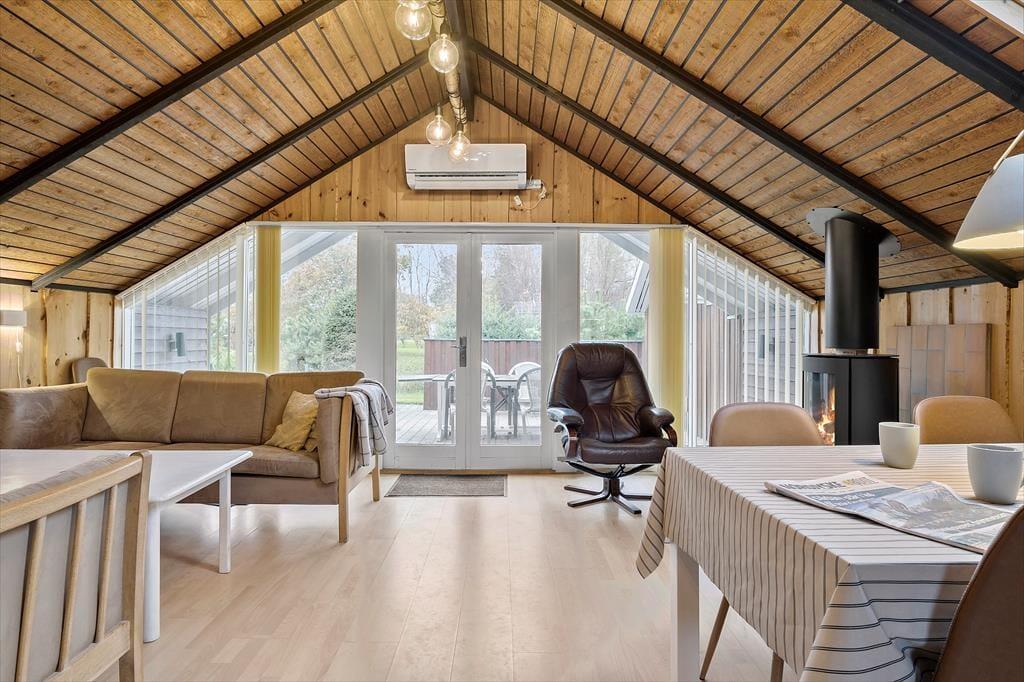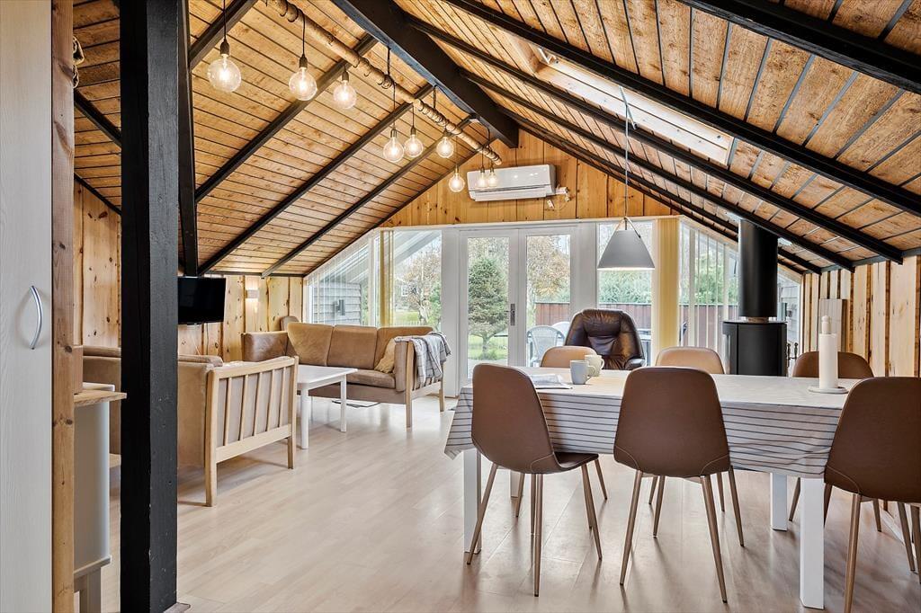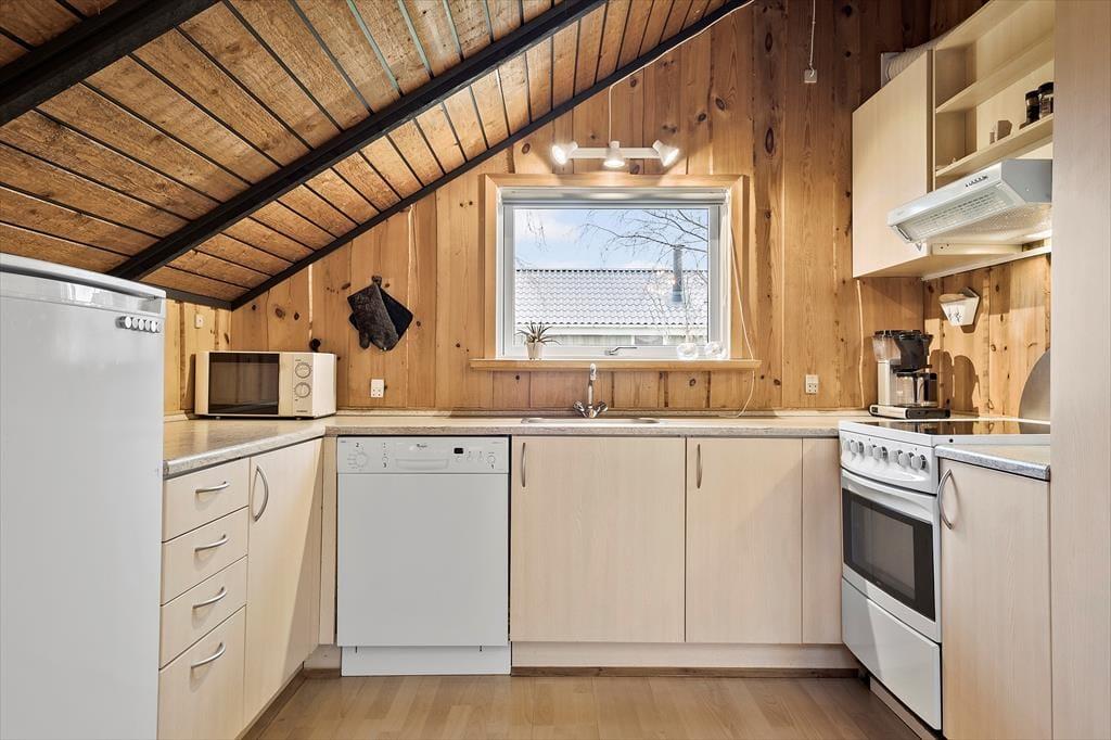 Med to gode soveværelser, et brusebadeværelse og en hyggelig stue passer planløsningen godt til fire personer, og en hund er også velkommen inden døre. Køkkenet er integreret med stuen, så I kan nemt smutte hen for at hente mere kaffe eller fylde skålen med snacks op, når I spiller kort ved spisebordet eller slapper af i sofaen med bøger eller en god film. Brændeovnen står klar til at sprede både varme og hyggestemning, og med loft til kip, rustik træbeklædning og god belysning er der i det hele taget bare en skøn atmosfære inden døre.
