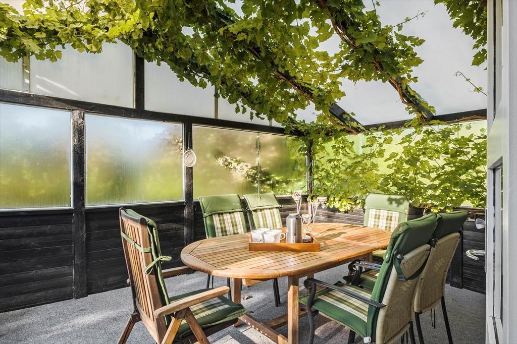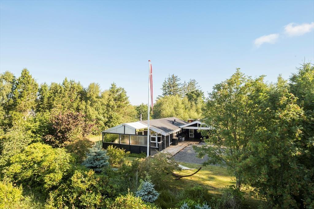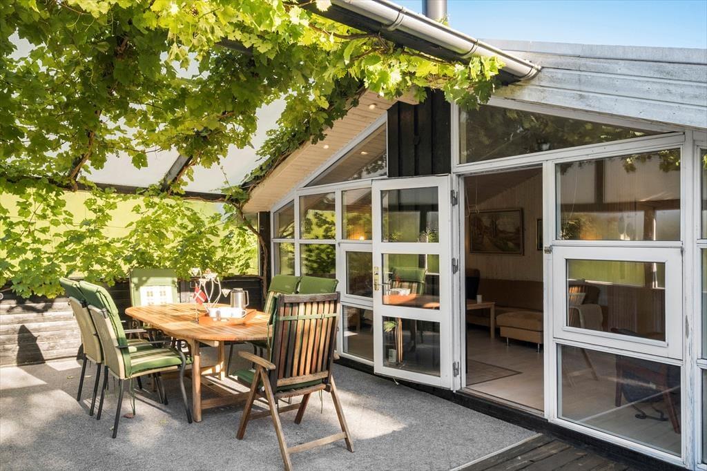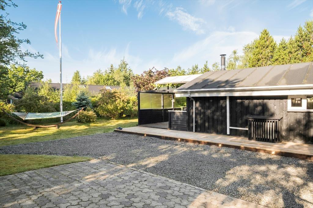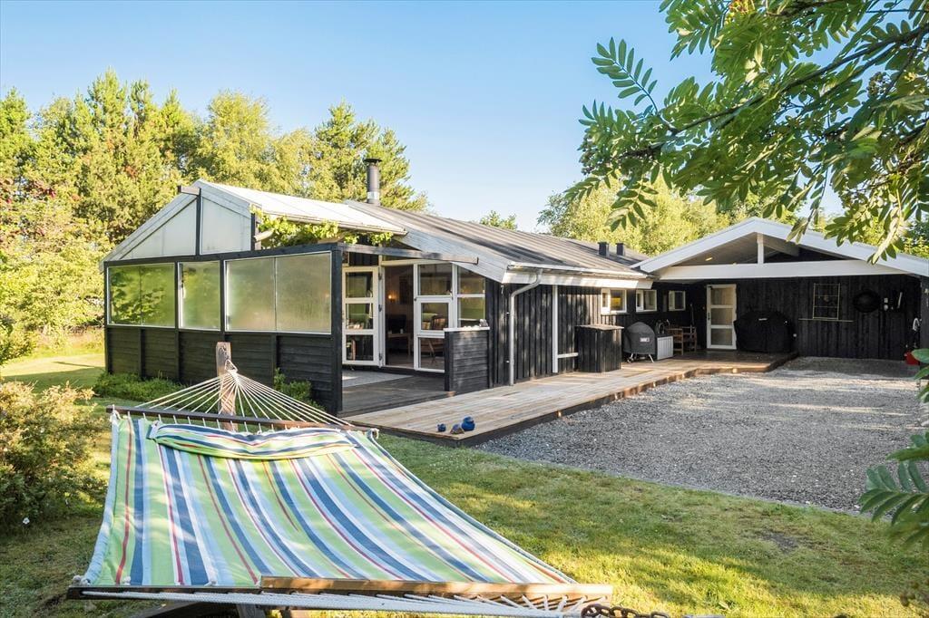 Den dejlige have er en af sommerhusets store kvaliteter. Her kan du slappe af omgivet af frodig grøn beplantning, mens du nyder freden og fuglekvidderet. På den overdækkede terrasse kan du tage morgenkaffen med udenfor uanset vejret, og om aftenen kan du samle familien til en lækker middag ved havebordet, mens grillen sender duften af sommer ud i luften. Haven er desuden perfekt til leg og boldspil, så både børn og barnlige sjæle kan more sig.