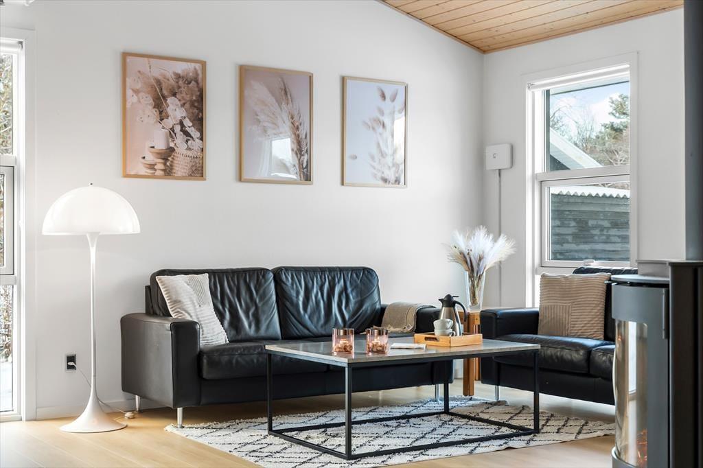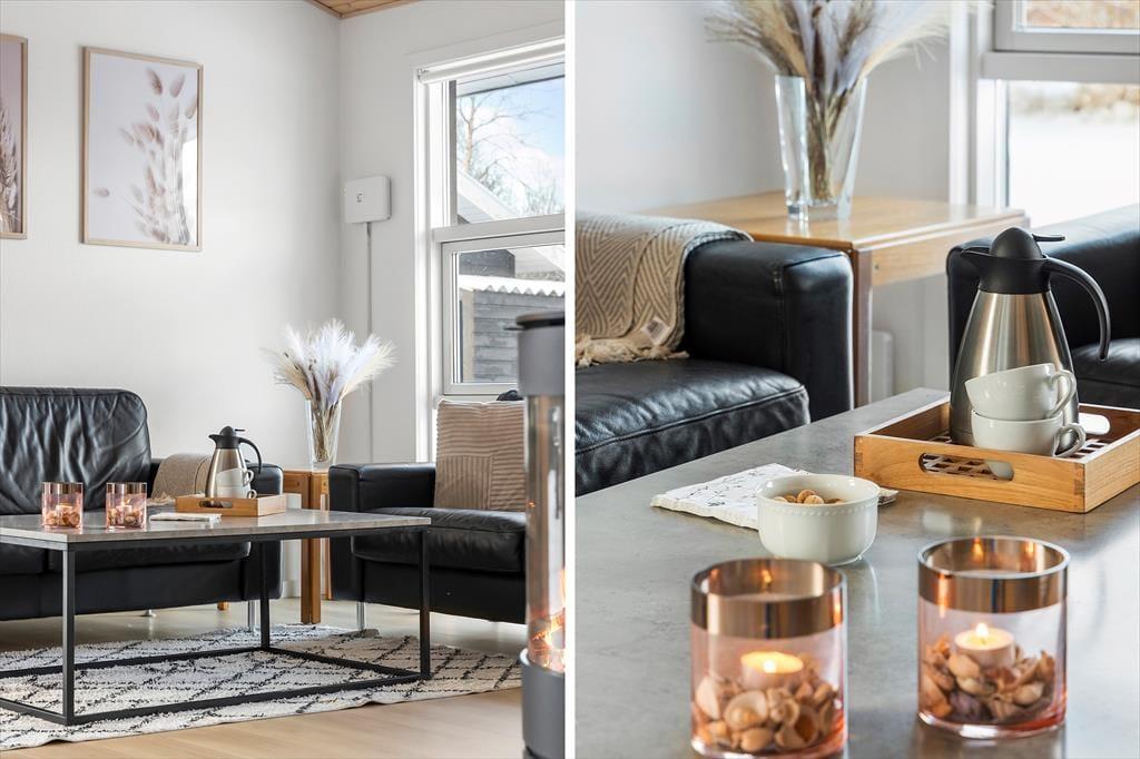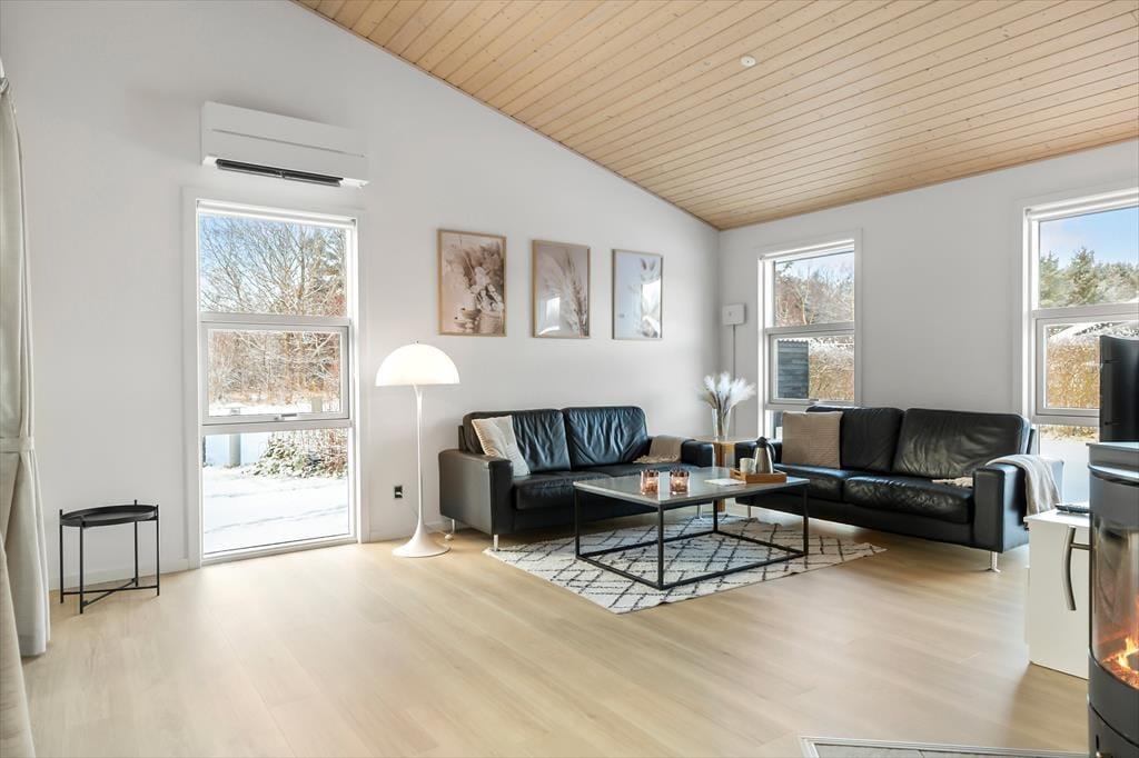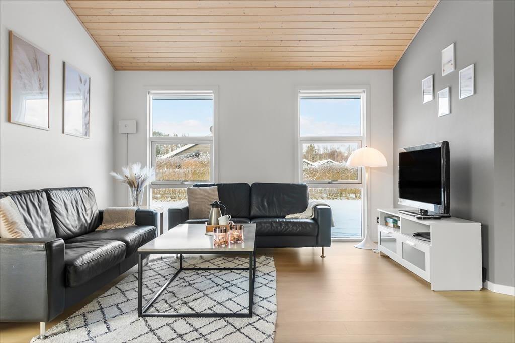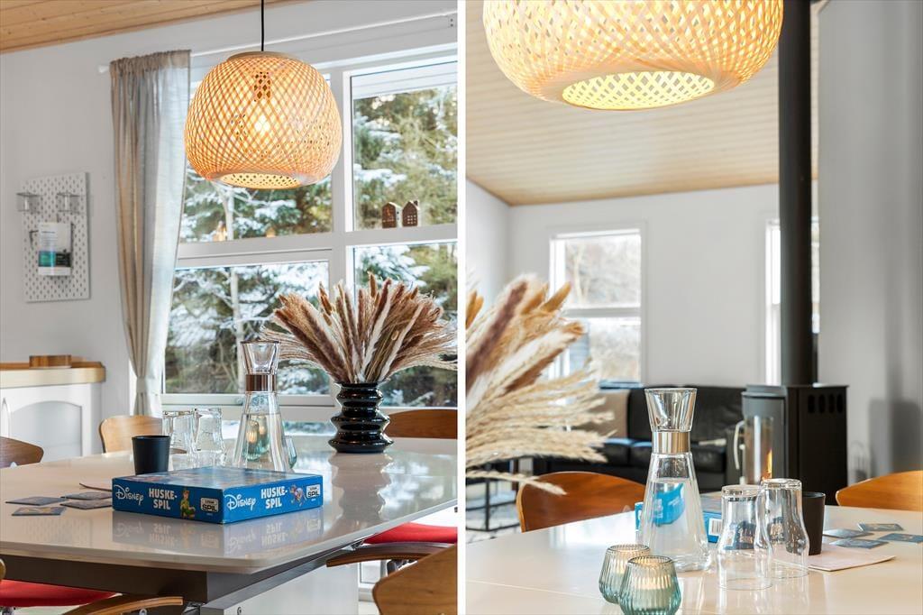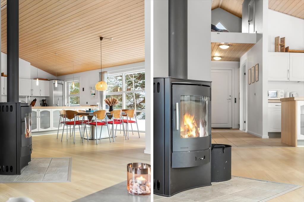 Når du træder ind i sommerhuset, bliver du mødt af et åbent og lyst opholdsområde, der straks inviterer til hygge og afslapning. De store vinduer giver et flot lysindfald, og de lyse farver skaber en varm og indbydende atmosfære. I husets hjerte finder du det veludstyrede køkken og den rummelige stue, som danner rammerne for samvær og hyggelige stunder med familie og venner. Her kan du tænde op i brændeovnen, slappe af i sofaen eller måske se en film på fladskærms-tv'et. Når det er tid til at slappe af, kan du tage et dyp i den indendørs spa, som er det perfekte sted at forkæle både krop og sjæl efter en dag fyldt med aktiviteter.