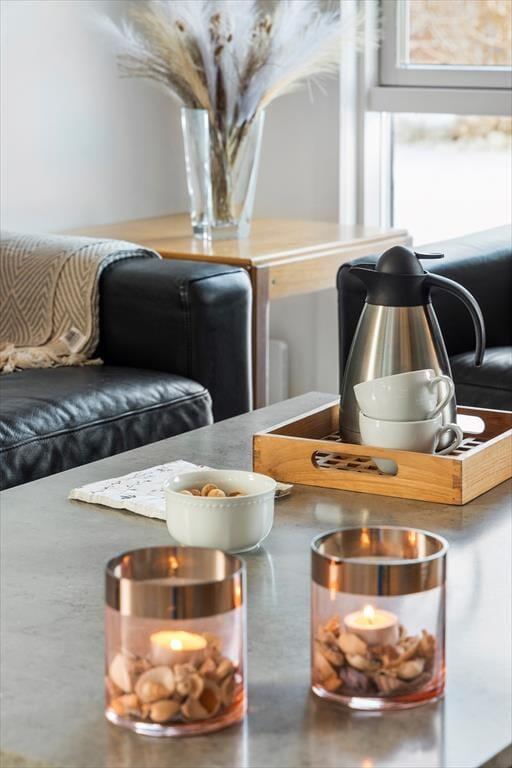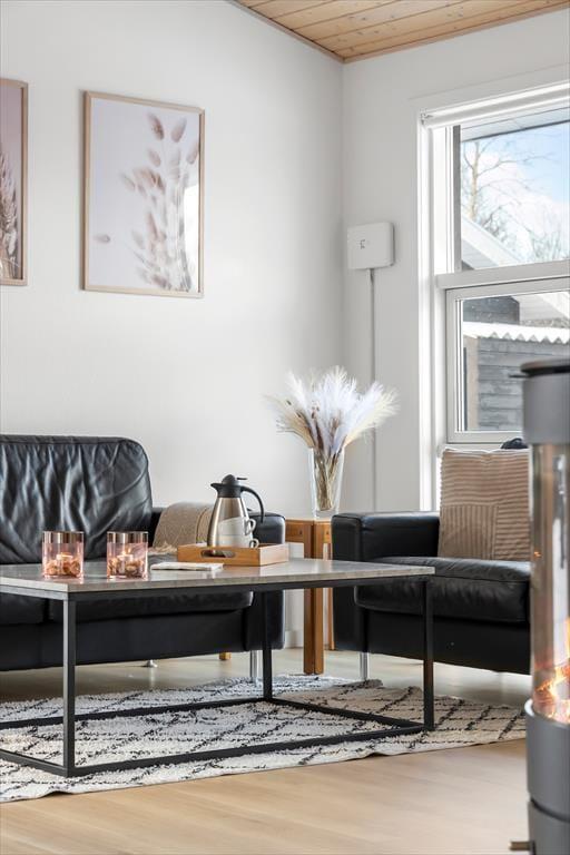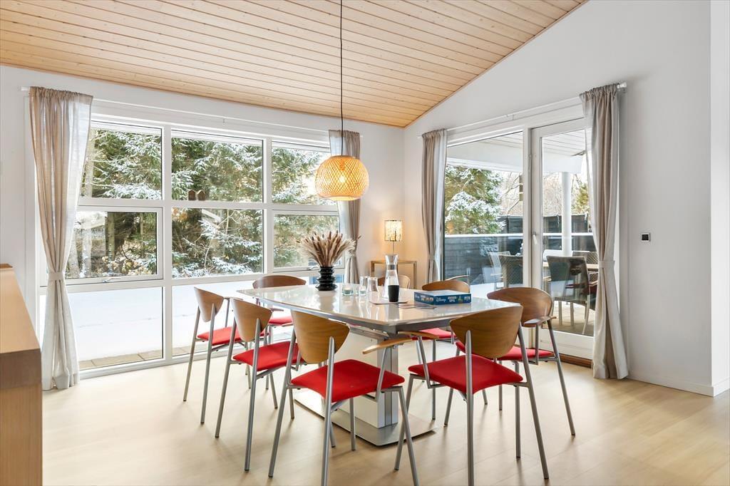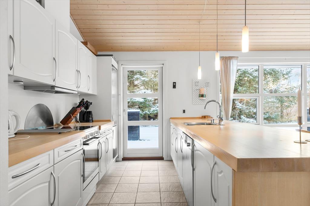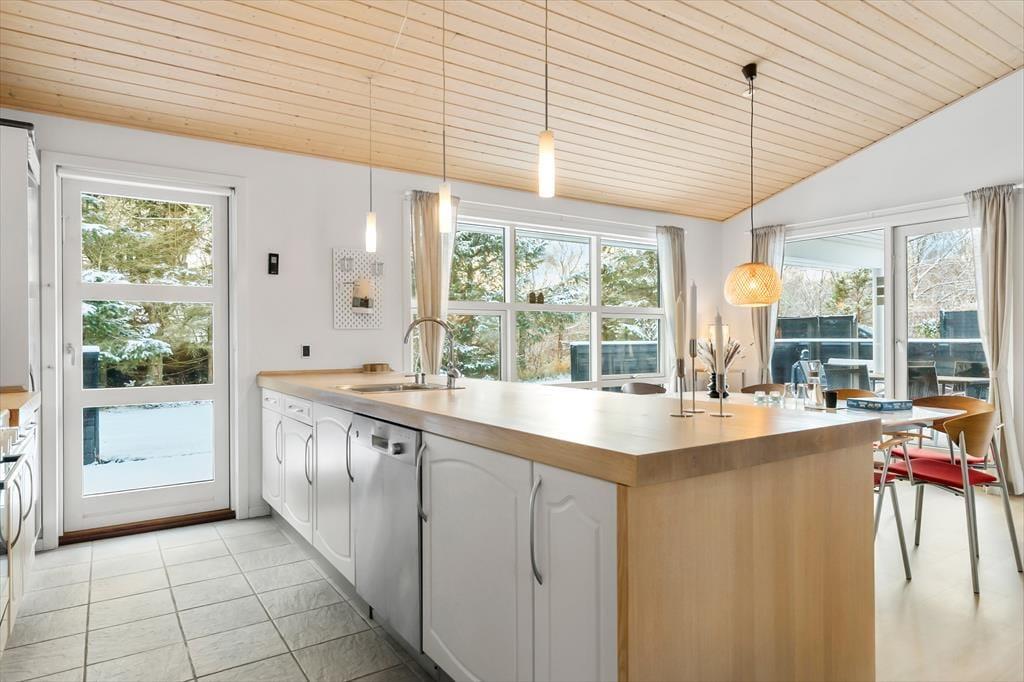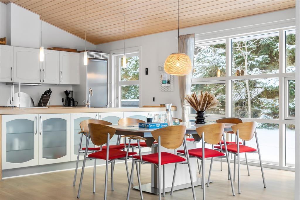 Når du træder ind i sommerhuset, bliver du mødt af et åbent og lyst opholdsområde, der straks inviterer til hygge og afslapning. De store vinduer giver et flot lysindfald, og de lyse farver skaber en varm og indbydende atmosfære. I husets hjerte finder du det veludstyrede køkken og den rummelige stue, som danner rammerne for samvær og hyggelige stunder med familie og venner. Her kan du tænde op i brændeovnen, slappe af i sofaen eller måske se en film på fladskærms-tv'et. Når det er tid til at slappe af, kan du tage et dyp i den indendørs spa, som er det perfekte sted at forkæle både krop og sjæl efter en dag fyldt med aktiviteter.