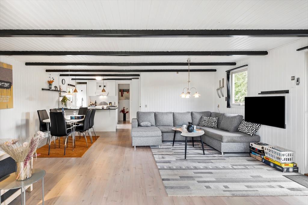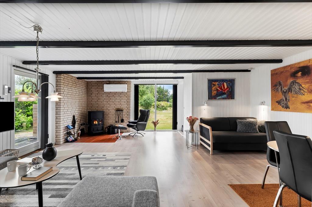 Hyggeligt sommerhus nær sandstrand i Hals med brændeovn, gulvvarme og stor have til afslapning.