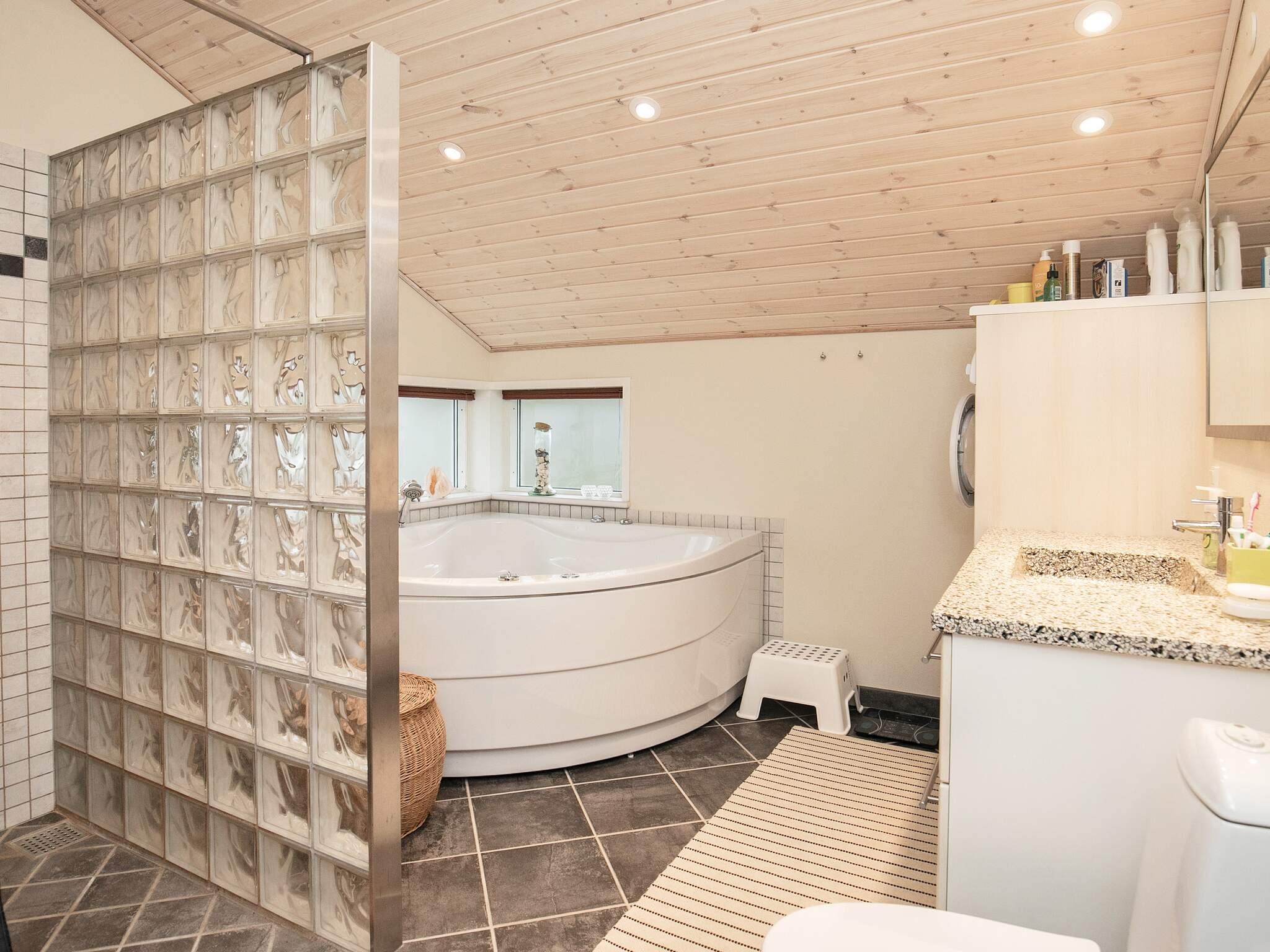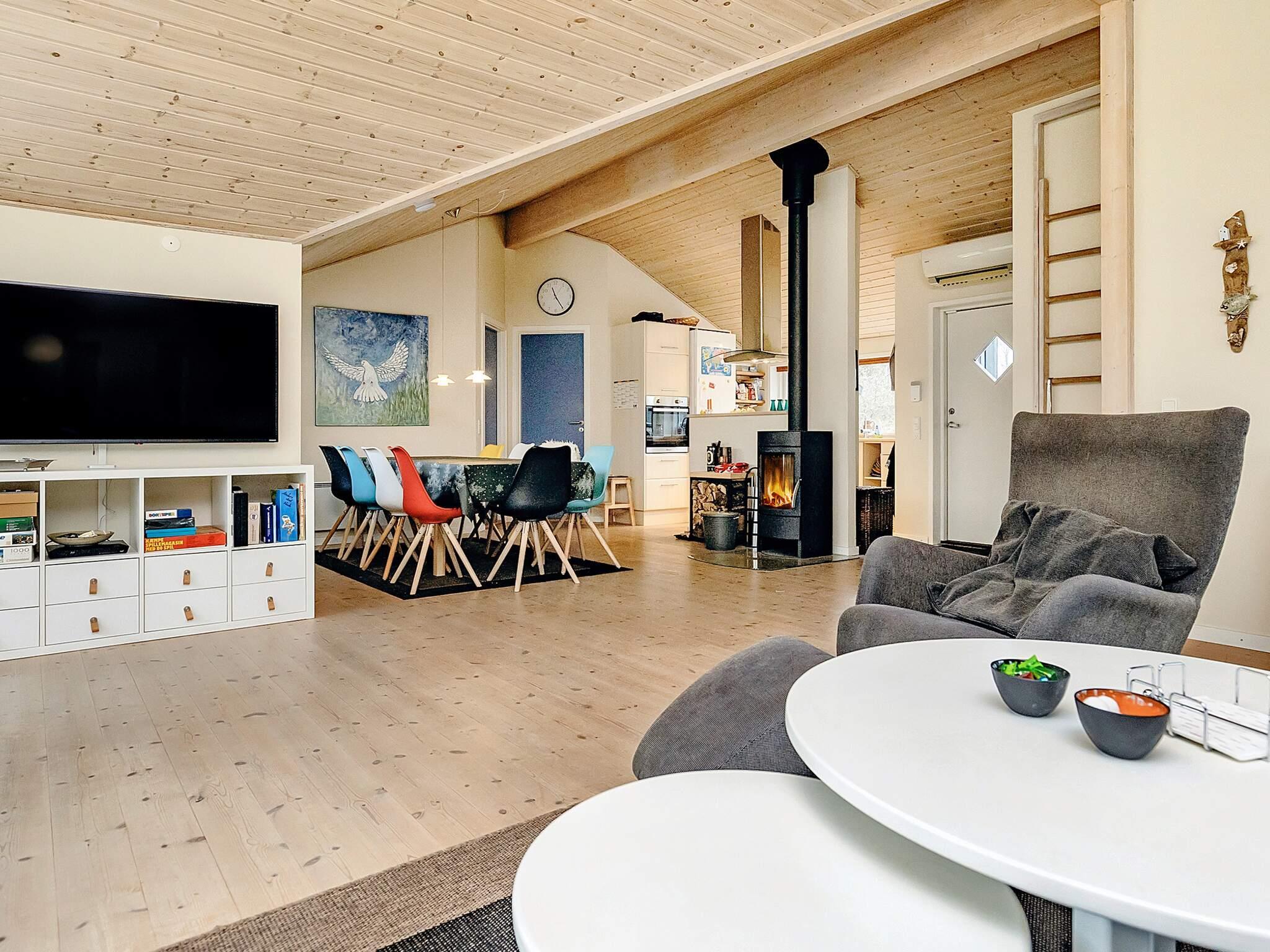 Interiøret har et hyggeligt køkken, spisestue og opholdsstue i åbent plan, ideel til familielivet. Til opvarmning kan du vælge mellem en klimavenlig varmepumpe og en brændeovn, der gør boligen fornøjelig hele året rundt. Der er ingen tv-pakke, men med det tilgængelige WiFi kan du streame dine egne udbydere på Smart TV'et. Det store badeværelse har en rummelig bruser og et boblebad, perfekt til at slappe af efter en dag på stranden.