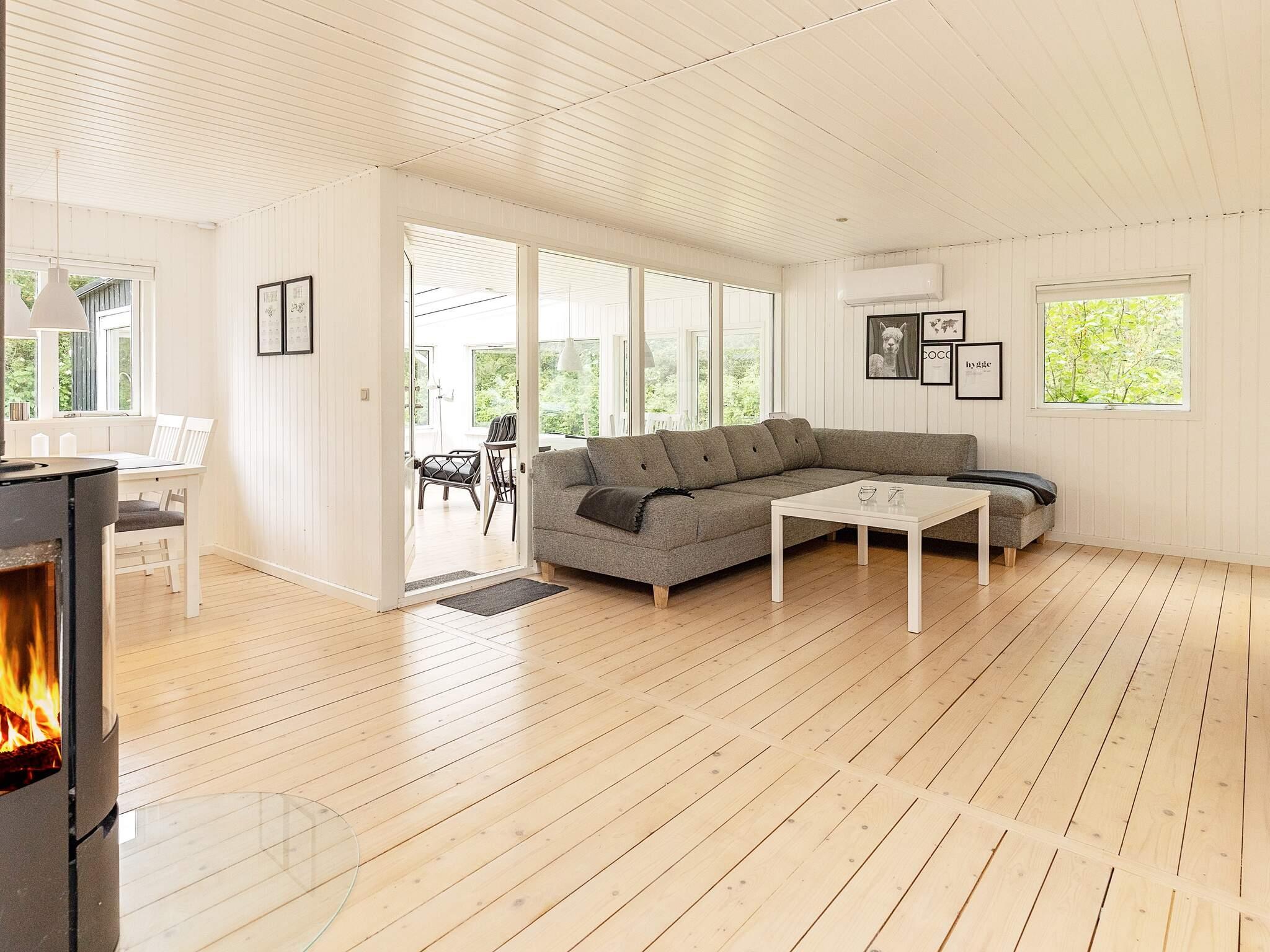 Indenfor er feriehuset udstyret med moderne bekvemmeligheder samt hyggelige funktioner. En energieffektiv varmepumpe sikrer et behageligt indeklima, mens den traditionelle brændeovn skaber en varm og indbydende atmosfære på køligere dage. Dette gør huset velegnet til ferie i hver sæson, der kombinerer både praktisk og charme.
