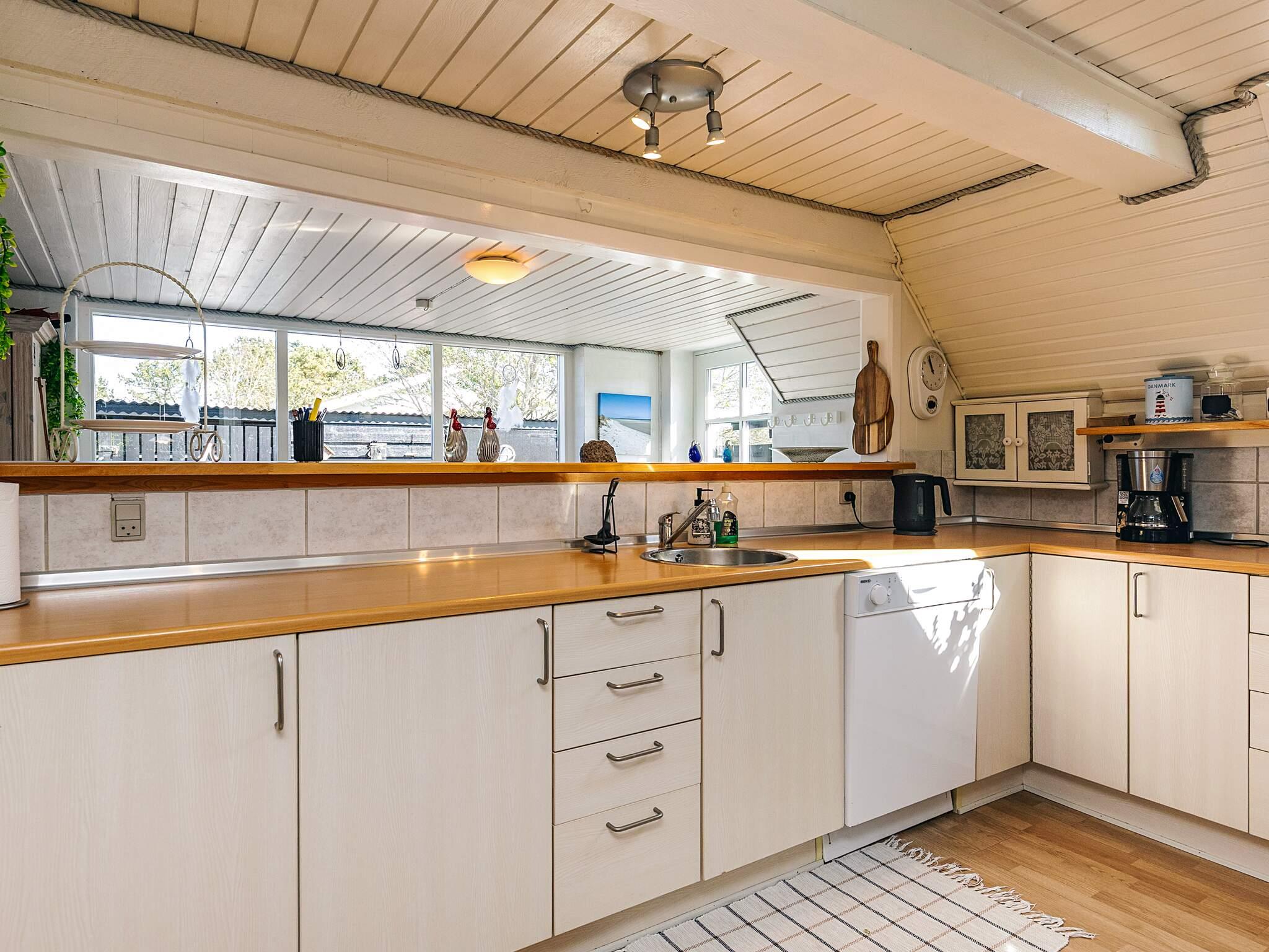 Lyst indrettet sommerhus bl.a. med lædermøbler. Soverummene i huset befinder sig på 1. sal. Der er to højstole til børn tilgængelige i huset. Der er en pillefyr i stuen og oliefyr, hvorfor I kan spare på strømforbruget. Der er kabel tv i huset der inkluderer, Danske kanaler, svenske kanaler, norske kanaler, og mange tyske kanaler. Husets grund er indhegnet både foran og bagved huset. Om sommeren er afstanden til nærmeste restaurant ca. 1 km.