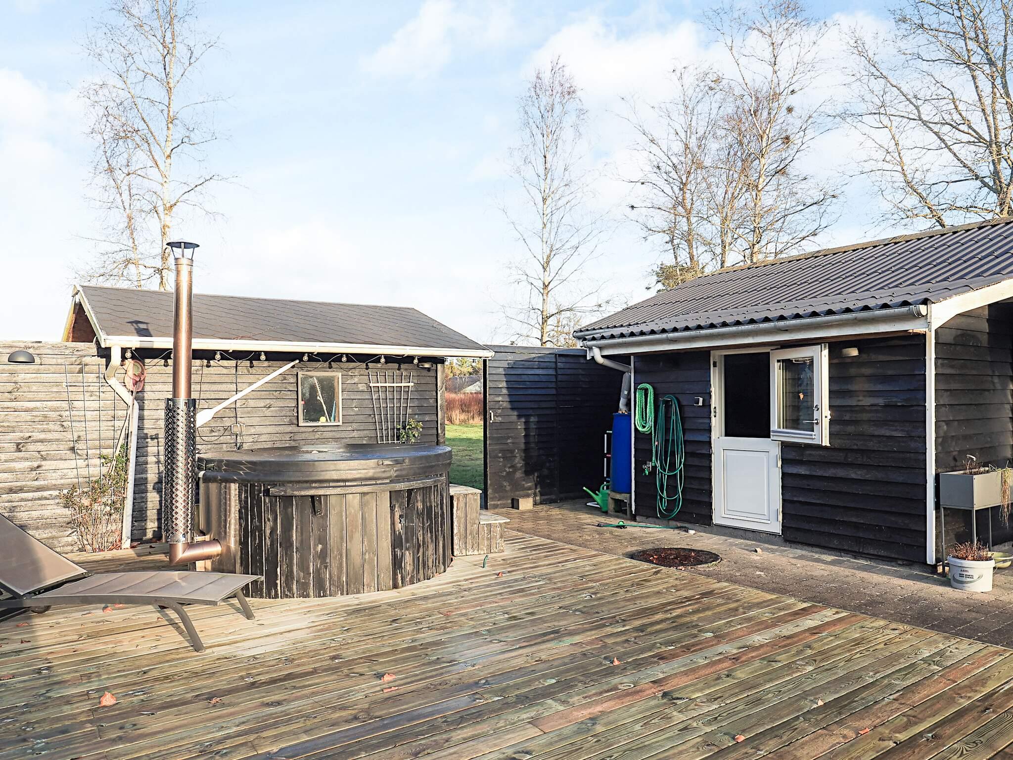 Sommerhuset og annekset er forbundet af en stor terrasse, hvor I også finder spabadet. Spabadet kræver brænde til opvarmning og kan bruges hele året rundt.