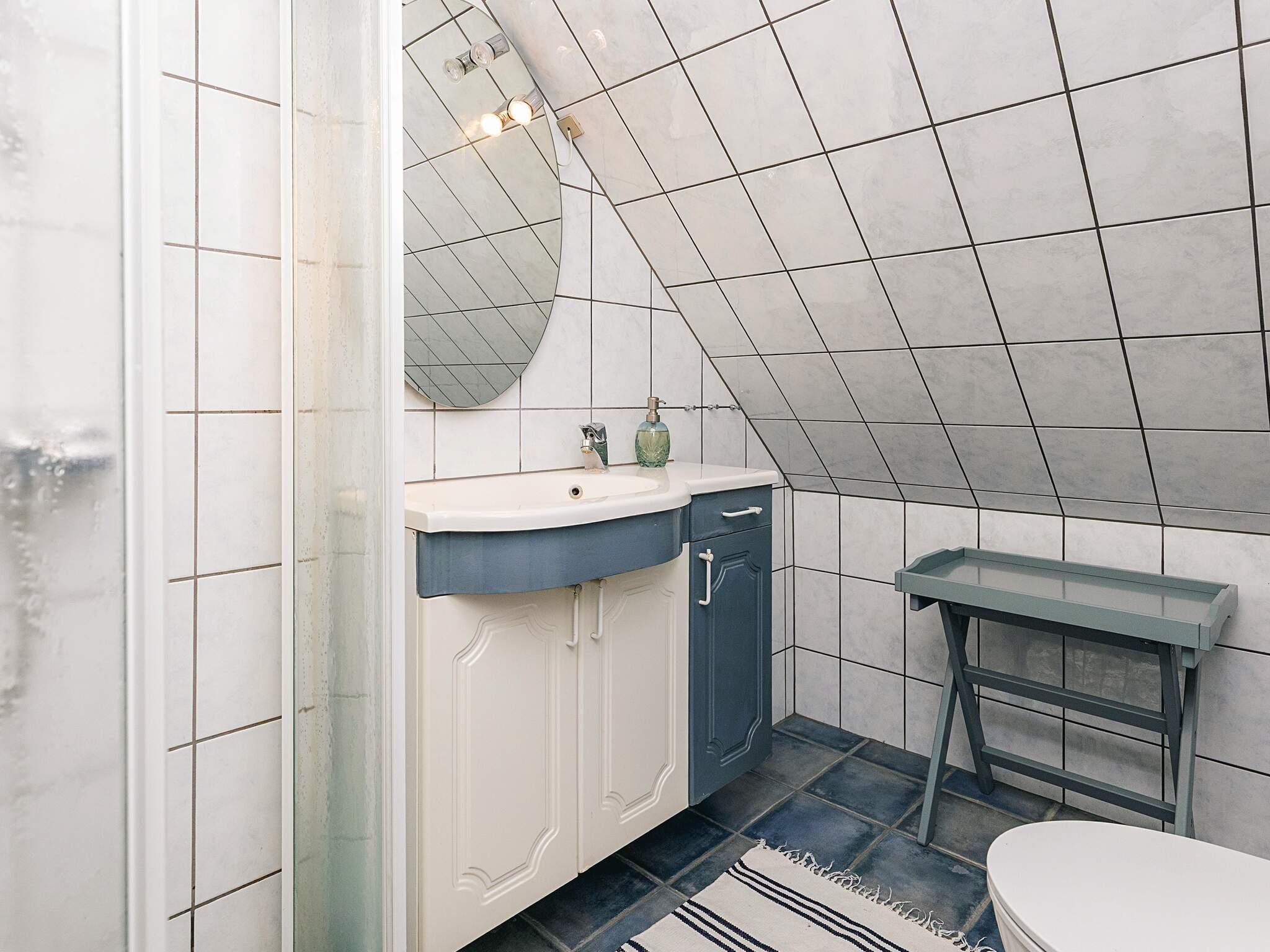 Her findes ligeledes et stort badeværelse med badekar og brus.