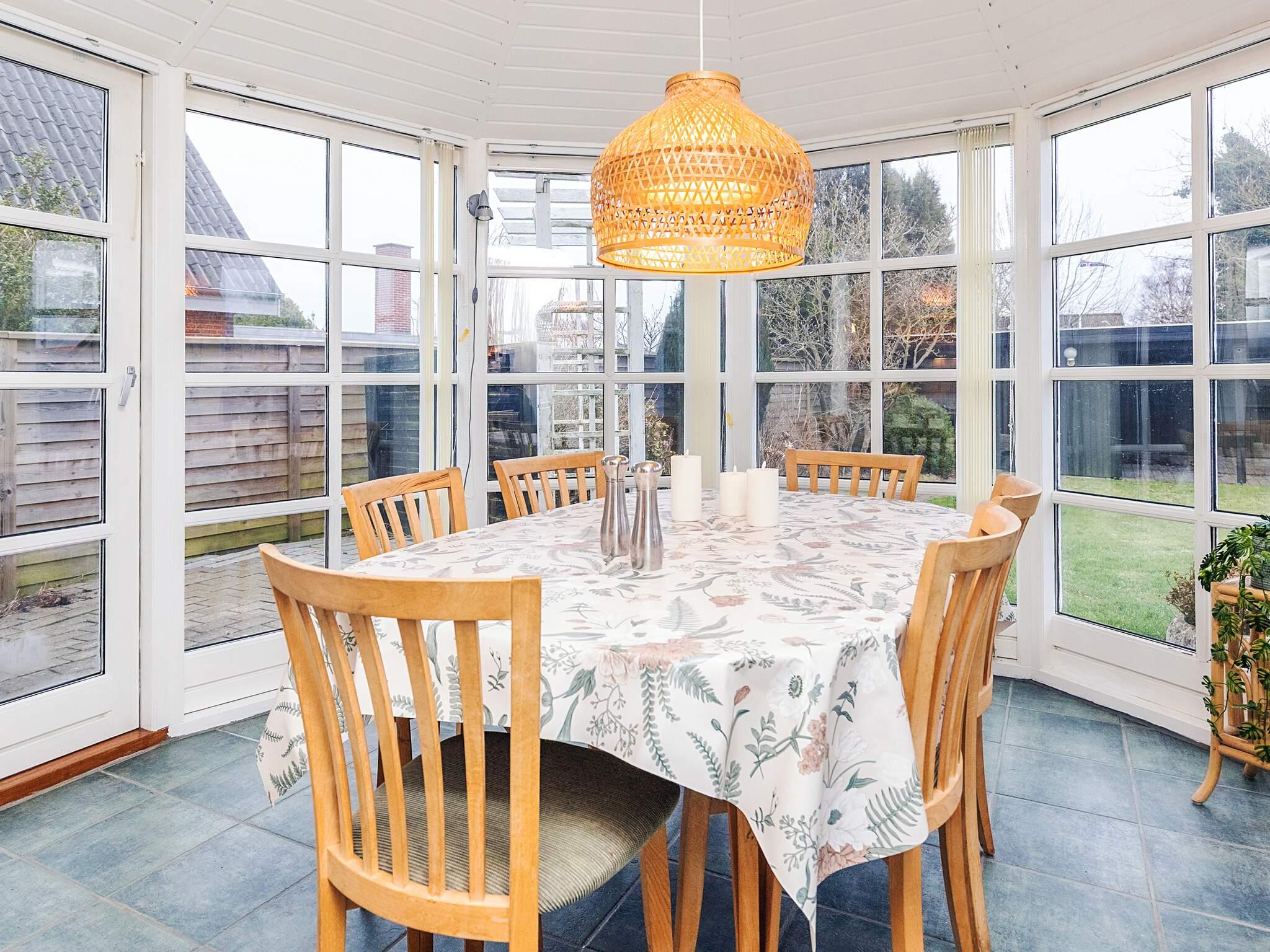 Huset byder på 139m2 lys og komfortabel indretning fordelt på to etager. I stueplan finder I rummelige opholdsrum: En stor stue med sofaarrangement, tv med chromecast og en hyggelig brændeovn.