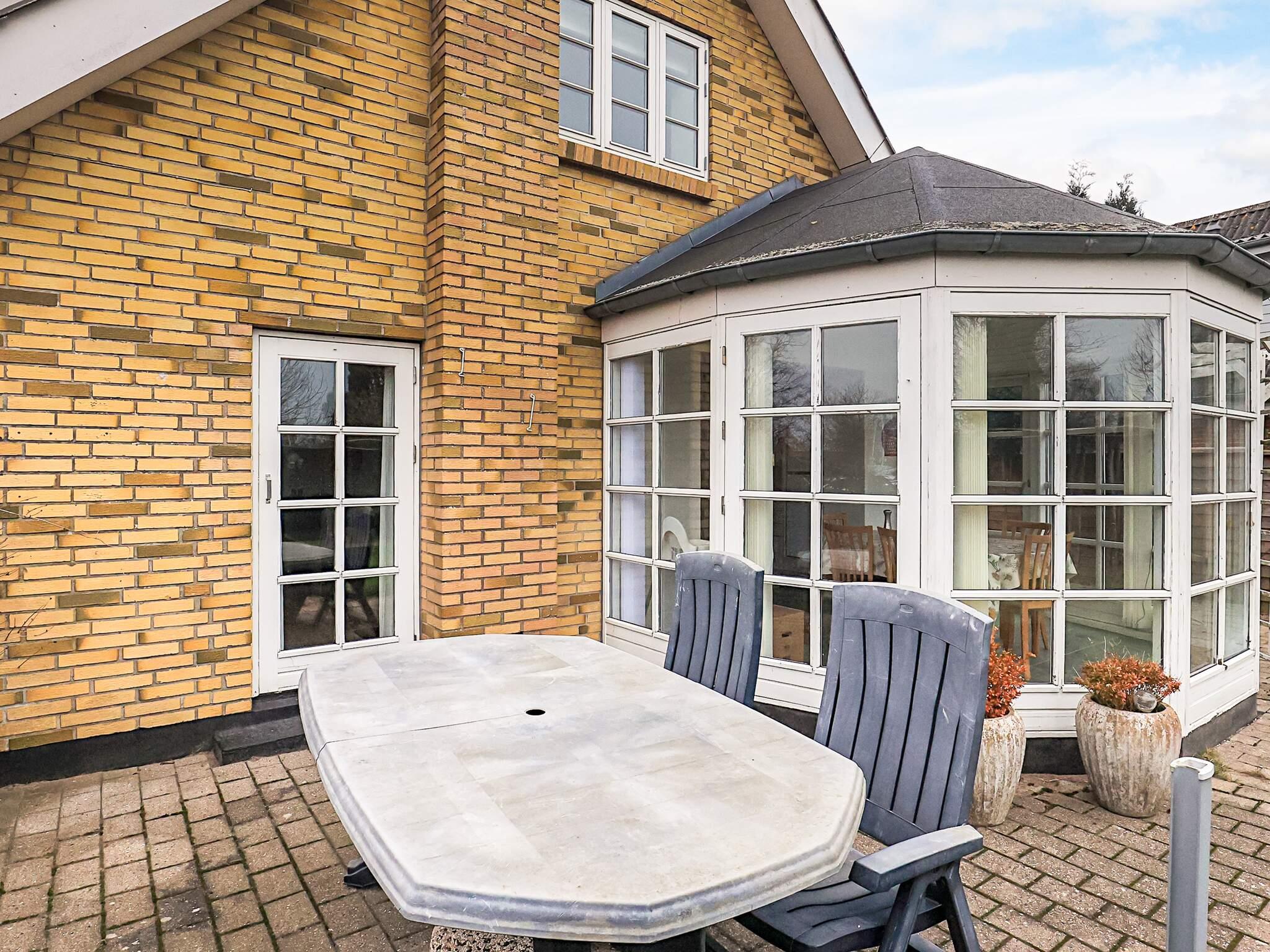 Udendørs kan I nyde en rolig have med en stenterrasse, havemøbler, parasol og kulgrill. Her er plads til leg og hygge i fredelig omgivelser midt i Hou by.
