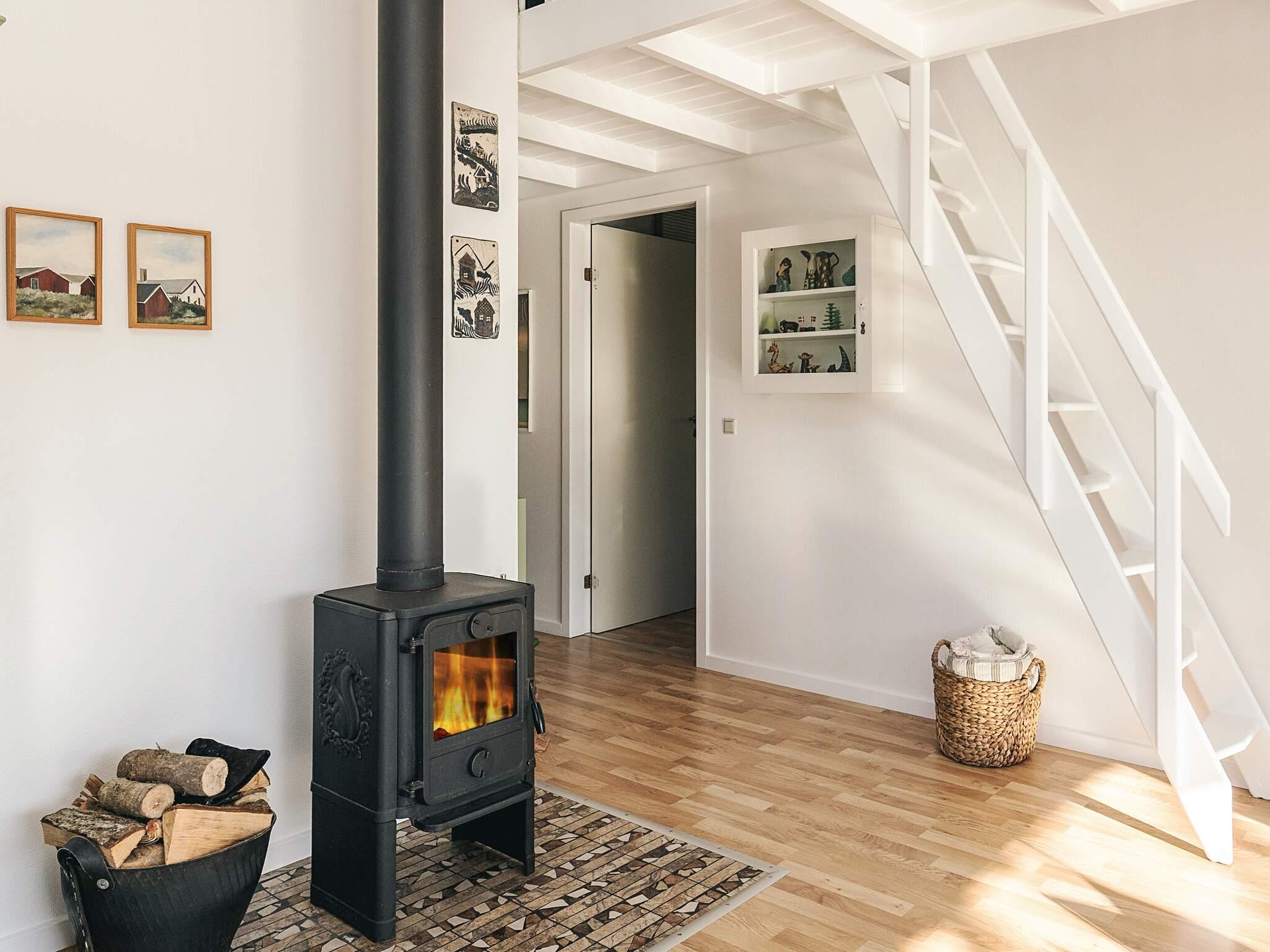 1 Opholdsstue: Brændeovn, stereoanlæg med cd, dvd-afspiller, tv, høj stol