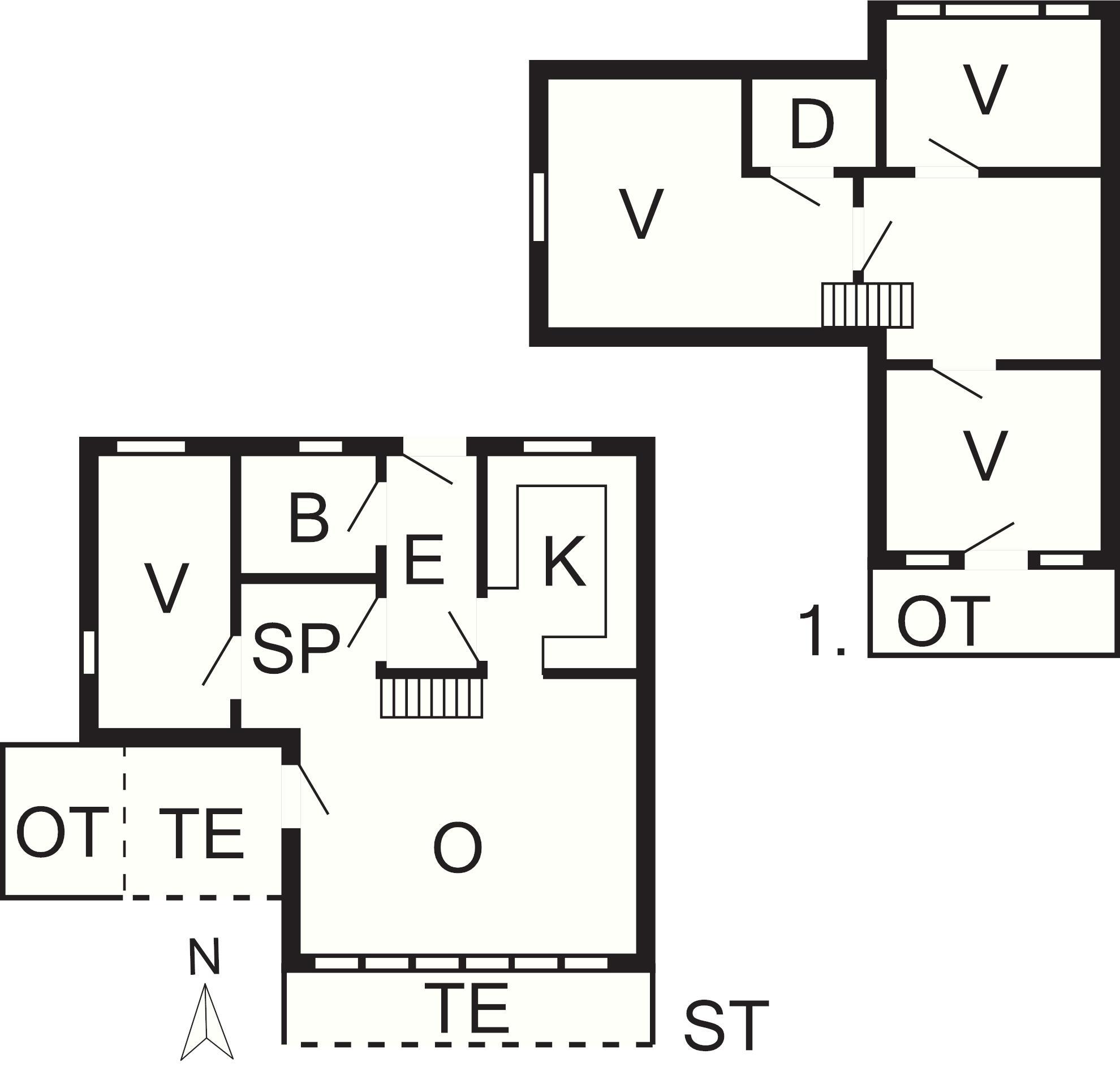 4 Soveværelser: (1DS)+(2S)+(4K)+(1DO)