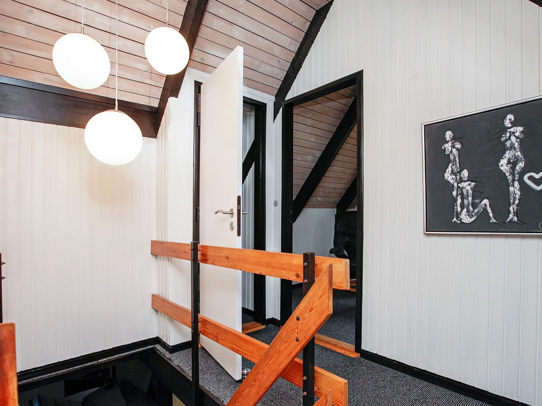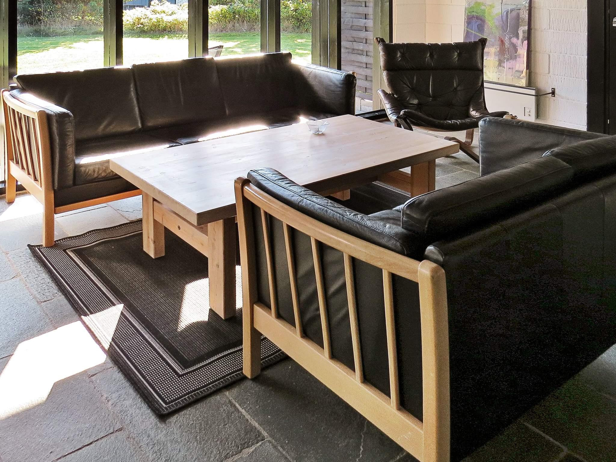 Hvad enten I opholder jer på terrassen nedenfor eller oppe på 1. salens balkon kan I høre havets brusen, når bare der er lidt vind. På bagsiden af huset, væk fra vejen, er der en overdækket terrasse, så I kan sidde udenfor til langt ud på aftenen. Huset ligger i gåafstand til såvel den hyggelige havneby Hou som til Lagunen, som kan byde på både fiskesø, minigolfbane og stor legeplads, som I kan bruge mod et mindre gebyr. Hele huset er holdt i sort/hvide farver.