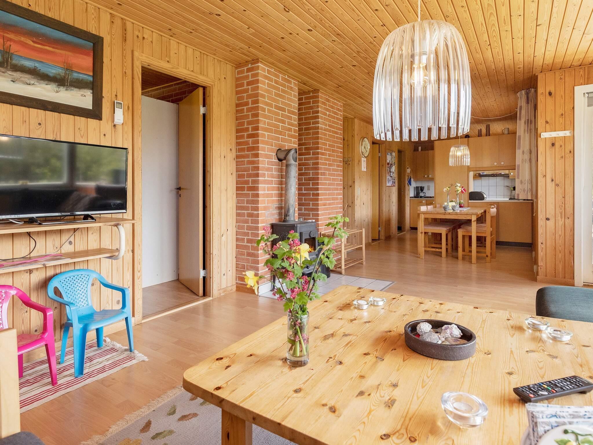 Sommerhus beliggende på en lukket grund med god plads til udendørs aktiviteter i rolige omgivelser i gåafstand til børnevenlig sandstrand ved Hou. Sommerhuset er bl.a. udstyret med vaskemaskine, brændeovn og trådløst internet. Køkkenet er bl.a. udstyret med køleskab med frostboks. Gulvvarme på badeværelset. Tre soveværelser. Til de små er der barnestol. Den 1350 m² store naturgrund har 20 m² åben terrasse og der er desuden 10 m² overdækket terrasse. Der er gynge og sandkasse til familiens yngste.