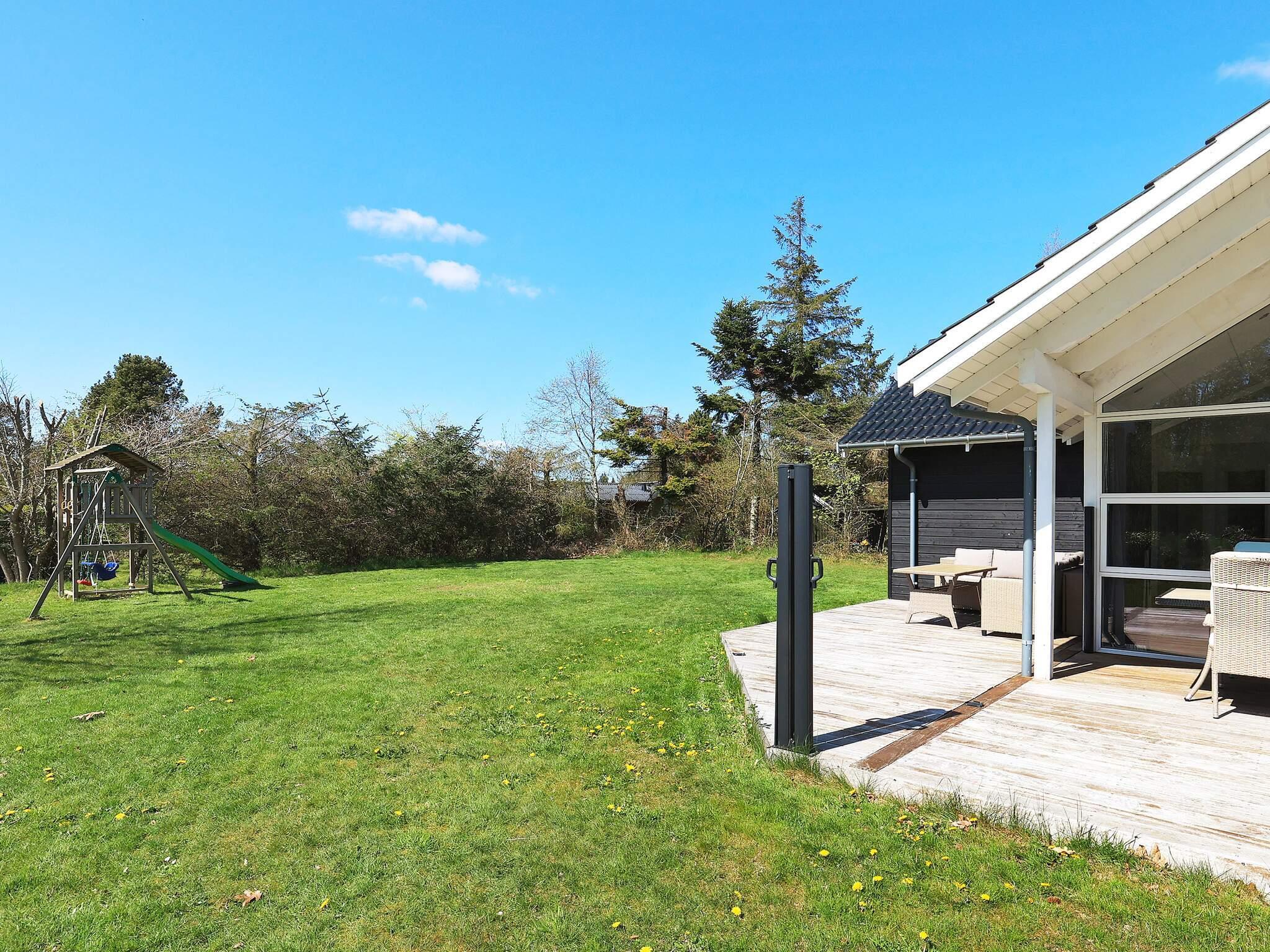 Moderne sommerhus fra 2017 med spa, terrasse og legeplads nær strand i rolige Koldkær.