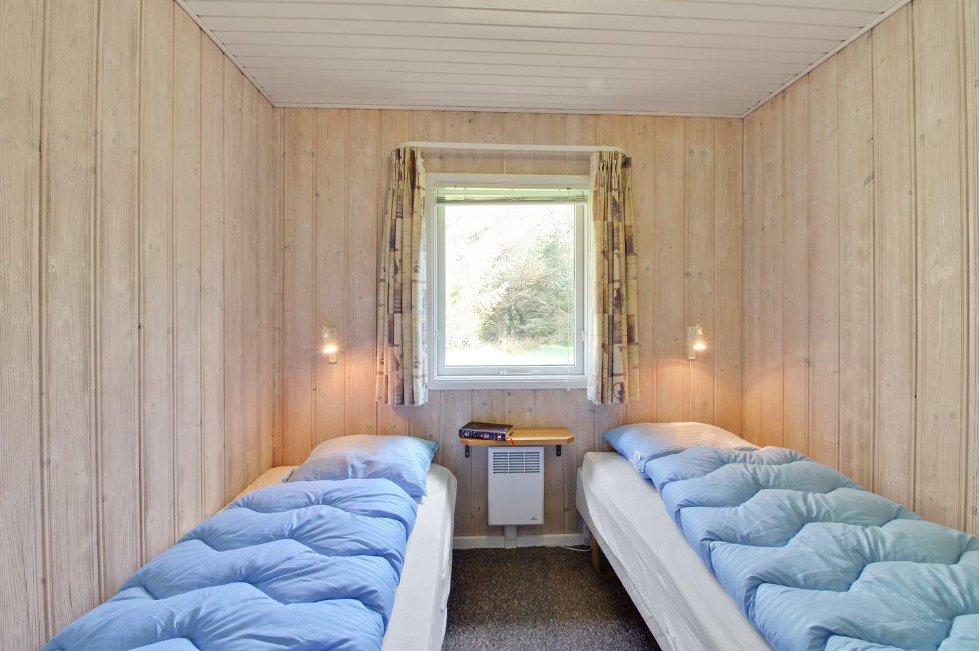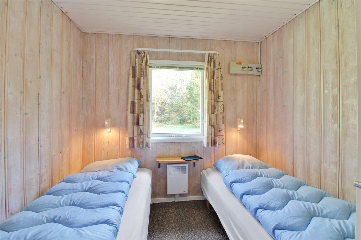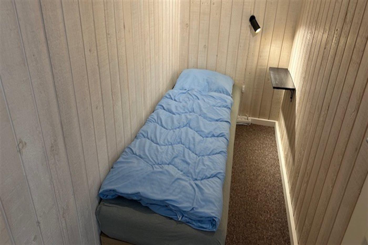 Der er i alt 5 soveværelser. Sovepladserne fordeler sig på: 2 sovepladser i dobbeltseng. 5 sovepladser i enkeltsenge. 2 sovepladser i køjeseng. Derudover er der 1 stk. barneseng.