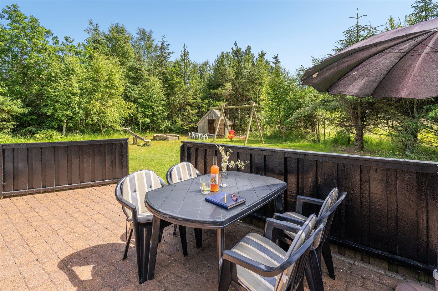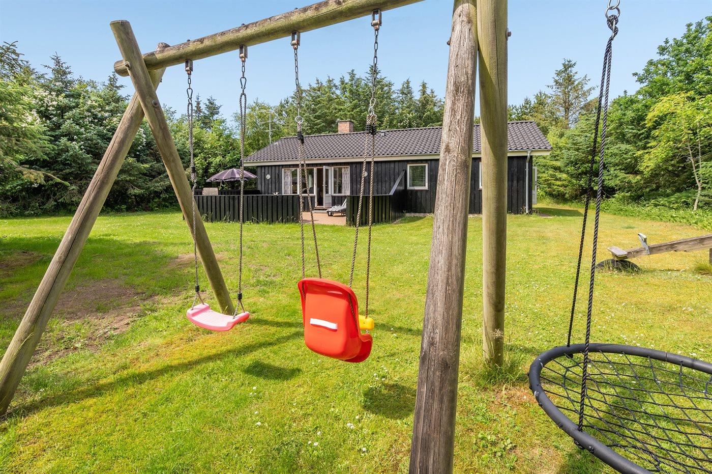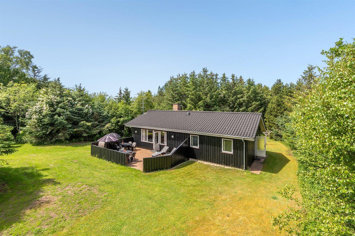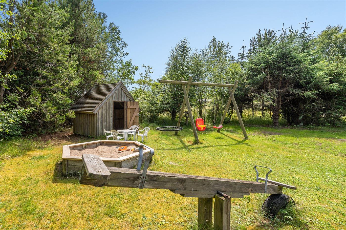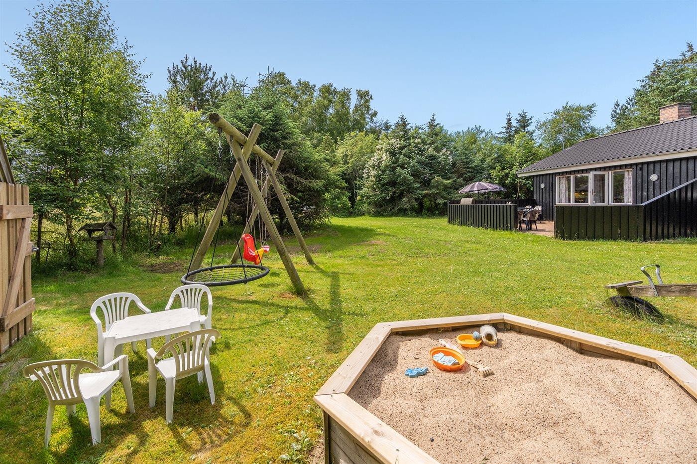 Ferieboligen er beliggende på en 1300 m² stor naturgrund. Der er 300 m til havet. Nærmeste forretning er beliggende i en afstand af 400 m. Der er en golfbane i en afstand af 5000 m. Til ferieboligen hører 30 m² terrasseareal. Gynge. Sandkasse. Legehus. Vippe. Parkering ved ferieboligen.
