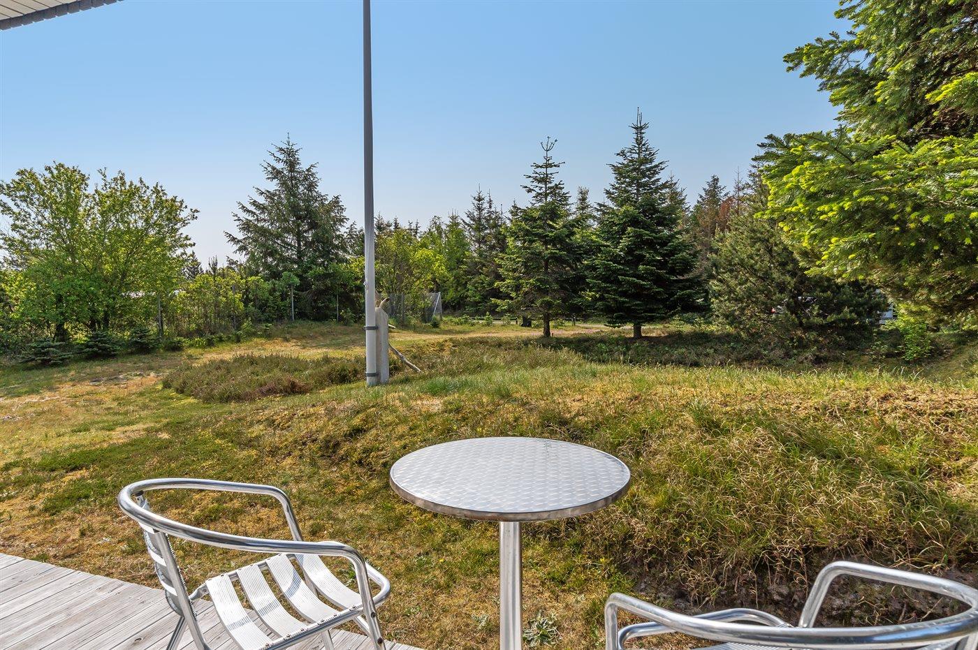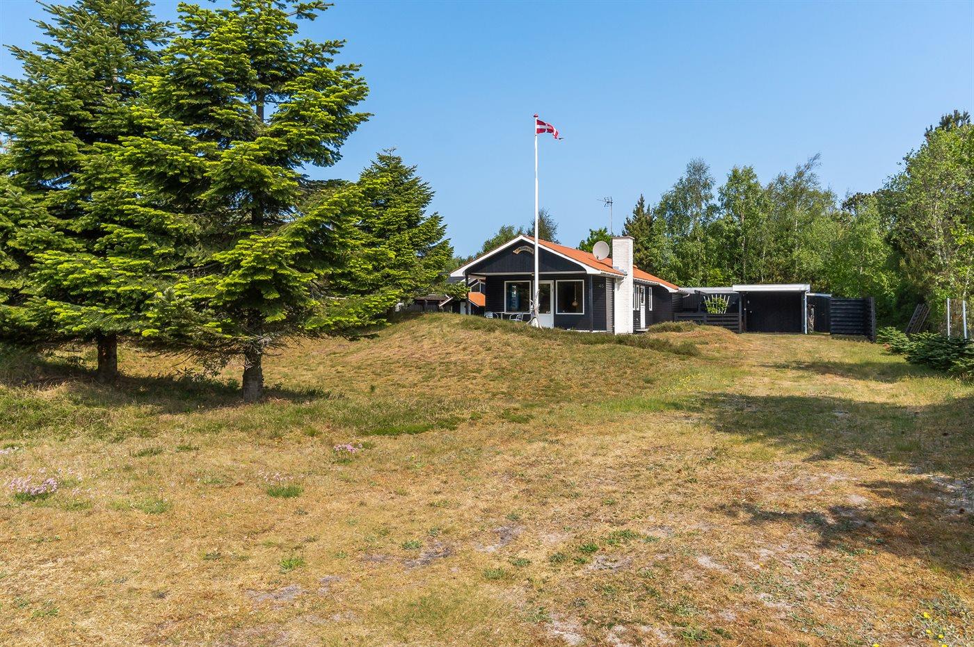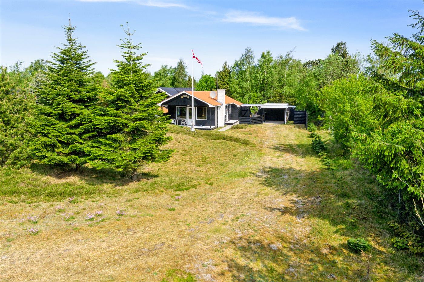 Ferieboligen er beliggende på en 1050 m² stor naturgrund. Der er 300 m til havet. Nærmeste forretning er beliggende i en afstand af 300 m. Til ferieboligen hører 45 m² terrasseareal. Desuden er der 25 m² overdækket terrasse. Der er redskabsrum. Grill til rådighed. Der er carport til rådighed. Parkering ved ferieboligen.