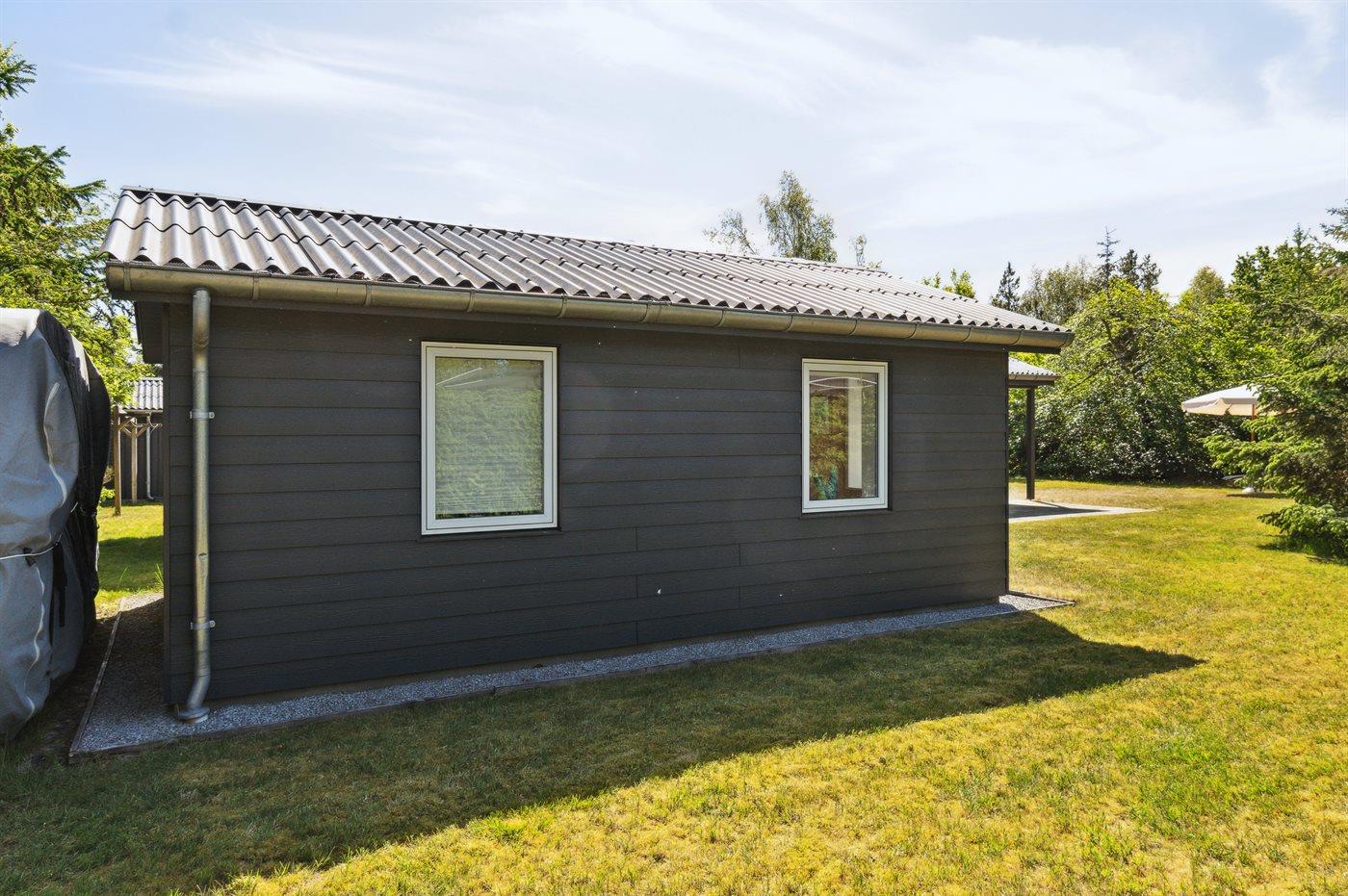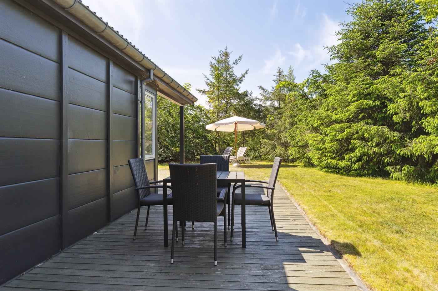 Ferieboligen er beliggende på en 1050 m² stor naturgrund. Der er 300 m til havet. Nærmeste forretning er beliggende i en afstand af 1000 m. Til ferieboligen hører 30 m² terrasseareal. Desuden er der 15 m² overdækket terrasse. Gynge. Sandkasse. Parkering ved ferieboligen.